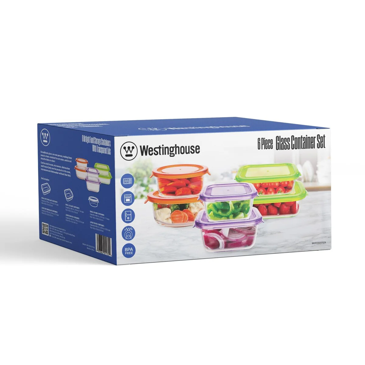Introducing our 12pc Westinghouse Glass Food Storage set, your answer to kitchen organization and freshness preservation. This versatile set includes six different sizes – 370ml, 640ml, 320ml, 520ml, 400ml & 650ml – ensuring you have the perfect container for every meal, snack, or ingredient. Say goodbye to food waste and hello to a clutter-free pantry with this must-have storage solution!