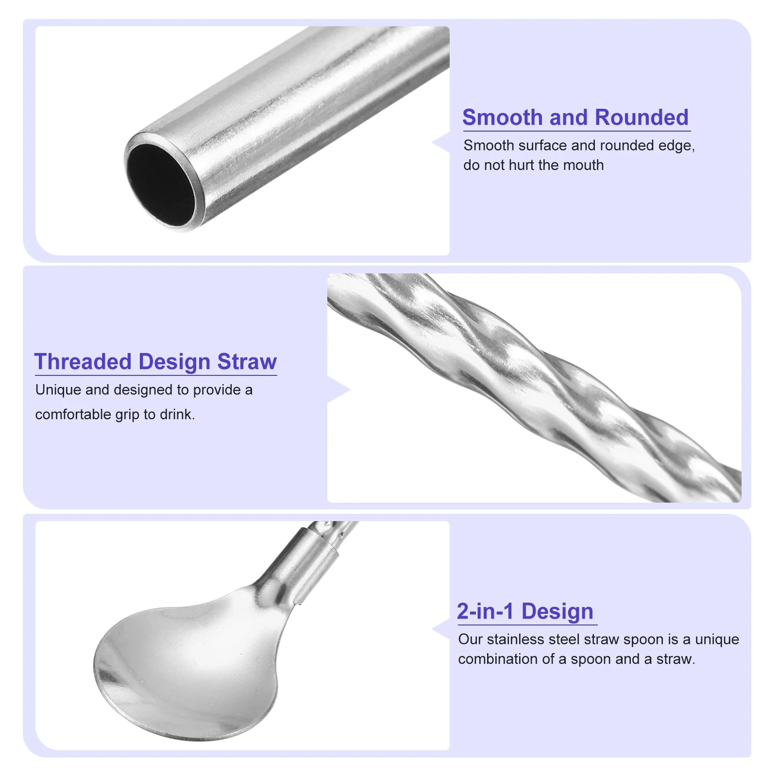 - 2-in-1 Design: Our stainless steel straw spoon is a unique combination of a spoon and a straw, eliminating the need for other separate utensils, multifunctional is versatile use and brings convenience to your life. The delicate twist shape straw is unique and designed to provide a comfortable grip to drink.