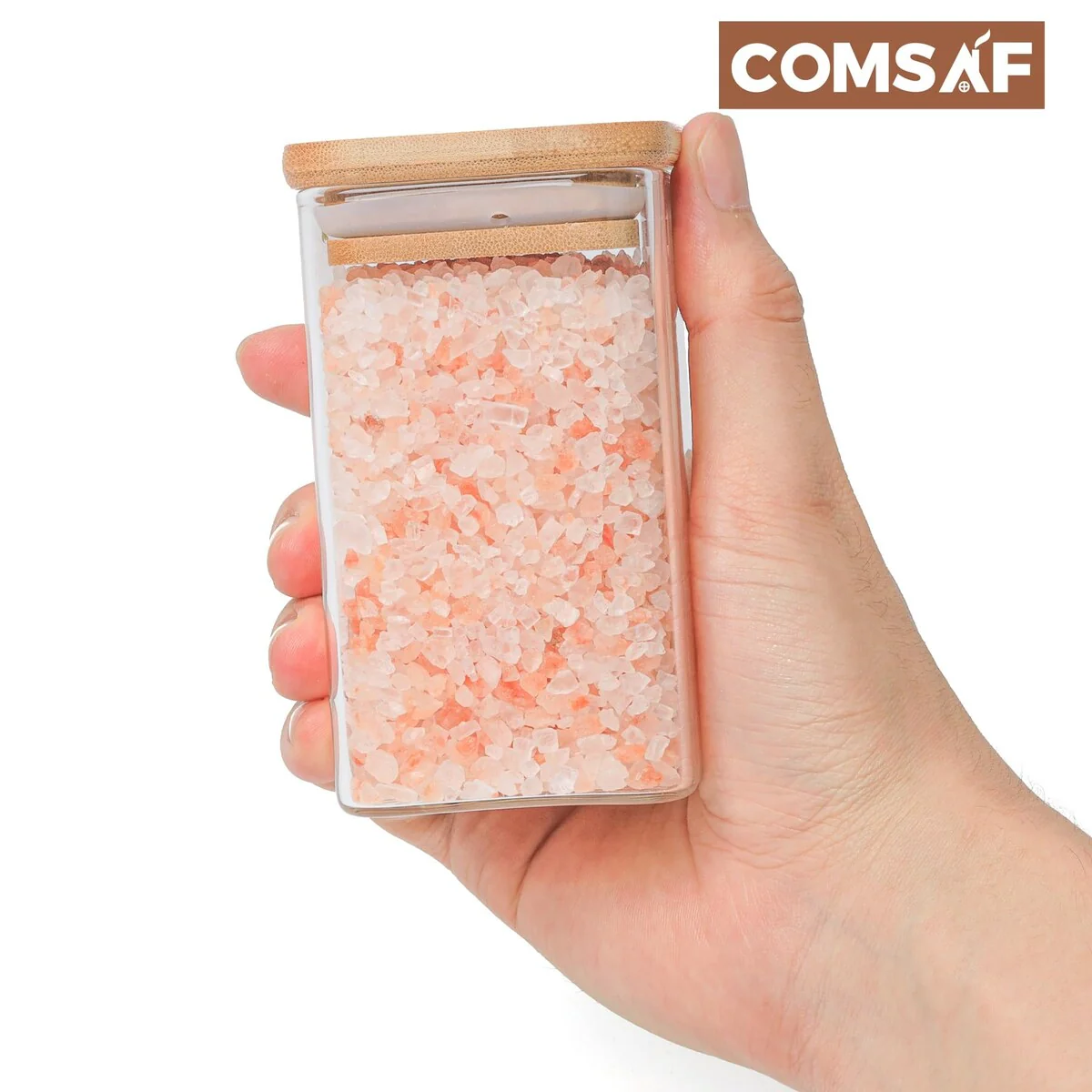 [Extensive Use] – Our small glass jars with bamboo lids are not only suitable for storing dry food such as beans, salt, sugar, spices, seasonings in the kitchen, but also small items such as cotton balls, cotton pads, hair bands in the bathroom or dressing table.