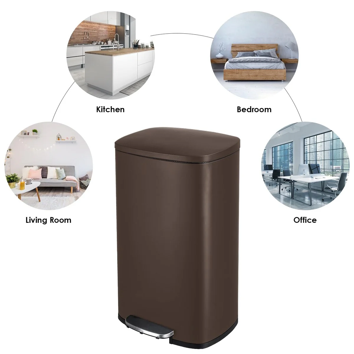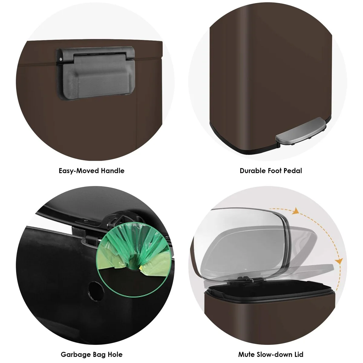 【WON’T DISTURB YOU】Using ABS hydraulic deceleration technology, the trash can lid can be slowly and gently closed when the pedal is released, without making a lot of noise, and it will not disturb your family when disposing of garbage.
