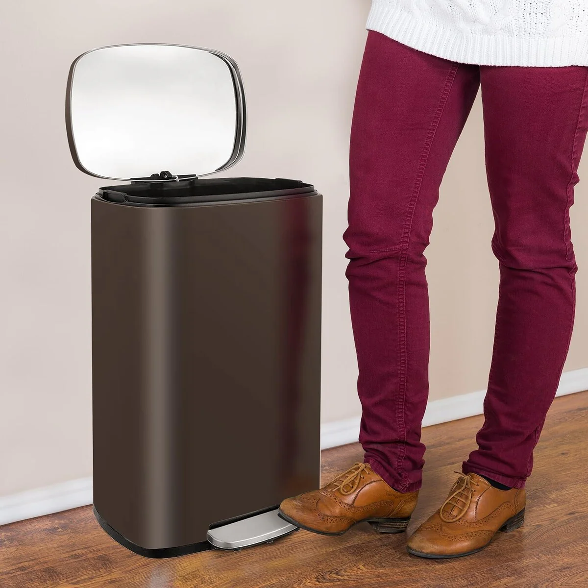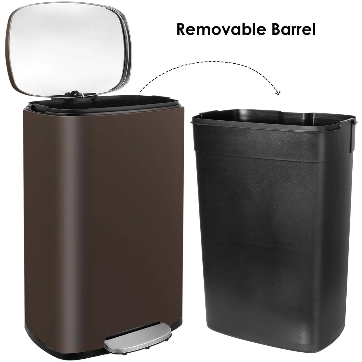 13.2 Gallon Step Trash Can, Stainless Steel Garbage Bin, Soft-Close Rubbish Bin with Removable Plastic Inner Bucket (Brown, 50L)