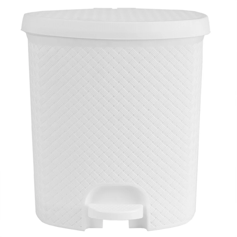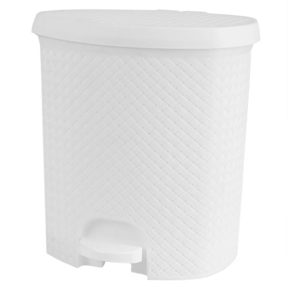 LIDDED TOP KEEPS ODOR AT BAY AND TRASH OUT OF SIGHT: The lidded design keeps the garbage out of plain view, while also minimizing the odorSTEP ACTIVATED LID KEEPS HANDS FREE OF GERMS: Step-on operated lid to provide a sanitary way to discard garbageCOMPACT SIZE TO FIT SMALL SPACES: The compact waste bin tucks away neatly under a desk or in the corner of the roomDESIGNED TO LOVE AND LAST: Made of sturdy plastic, it offers a clean design and ornate detailing that brings a stylish spin to the traditional waste bin.Measures 11.5" x 11.25" x 12.75"EASY TO CLEAN: Spot clean for easy maintenance