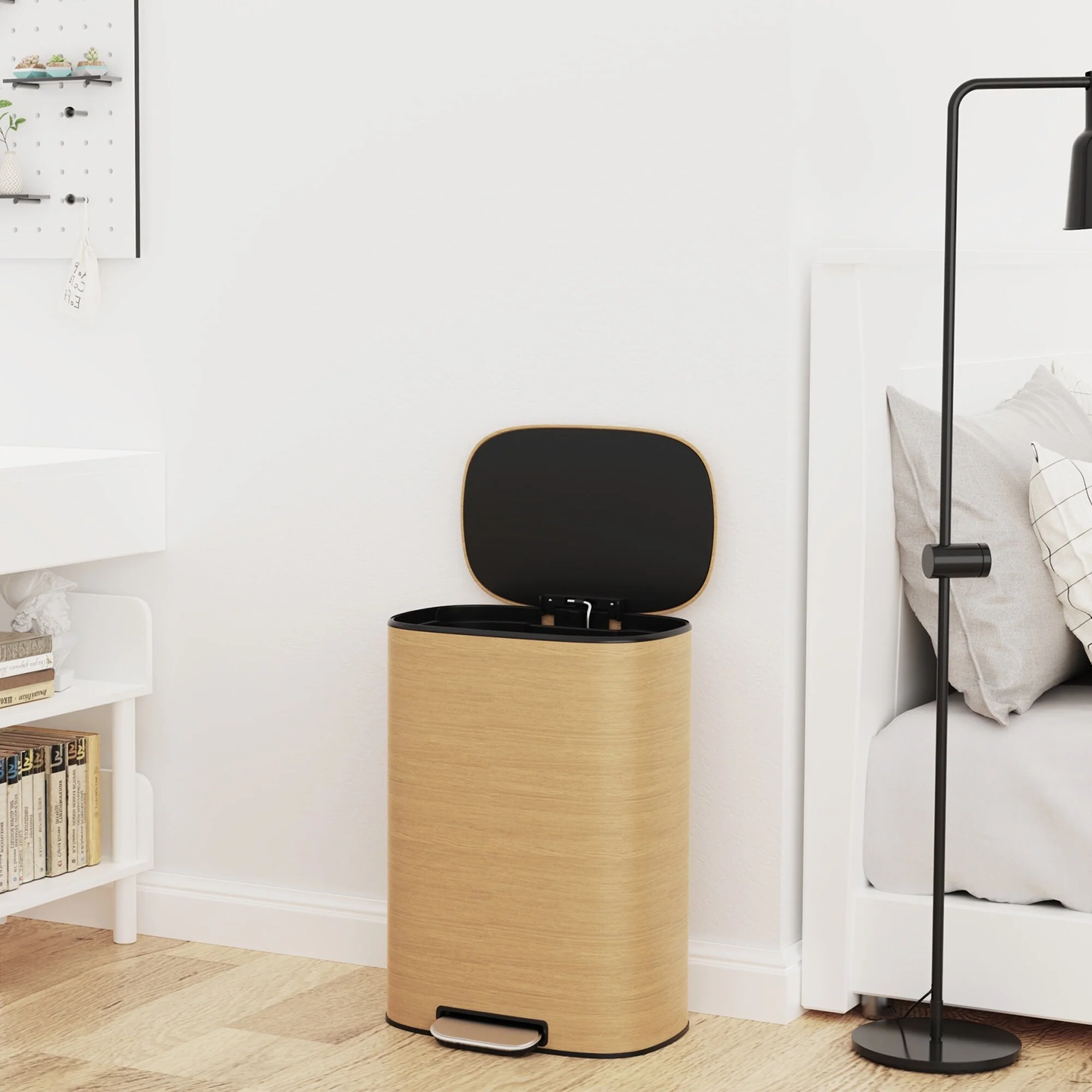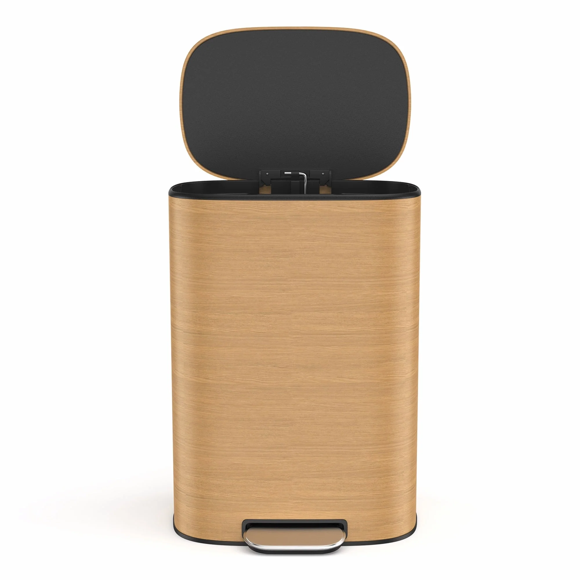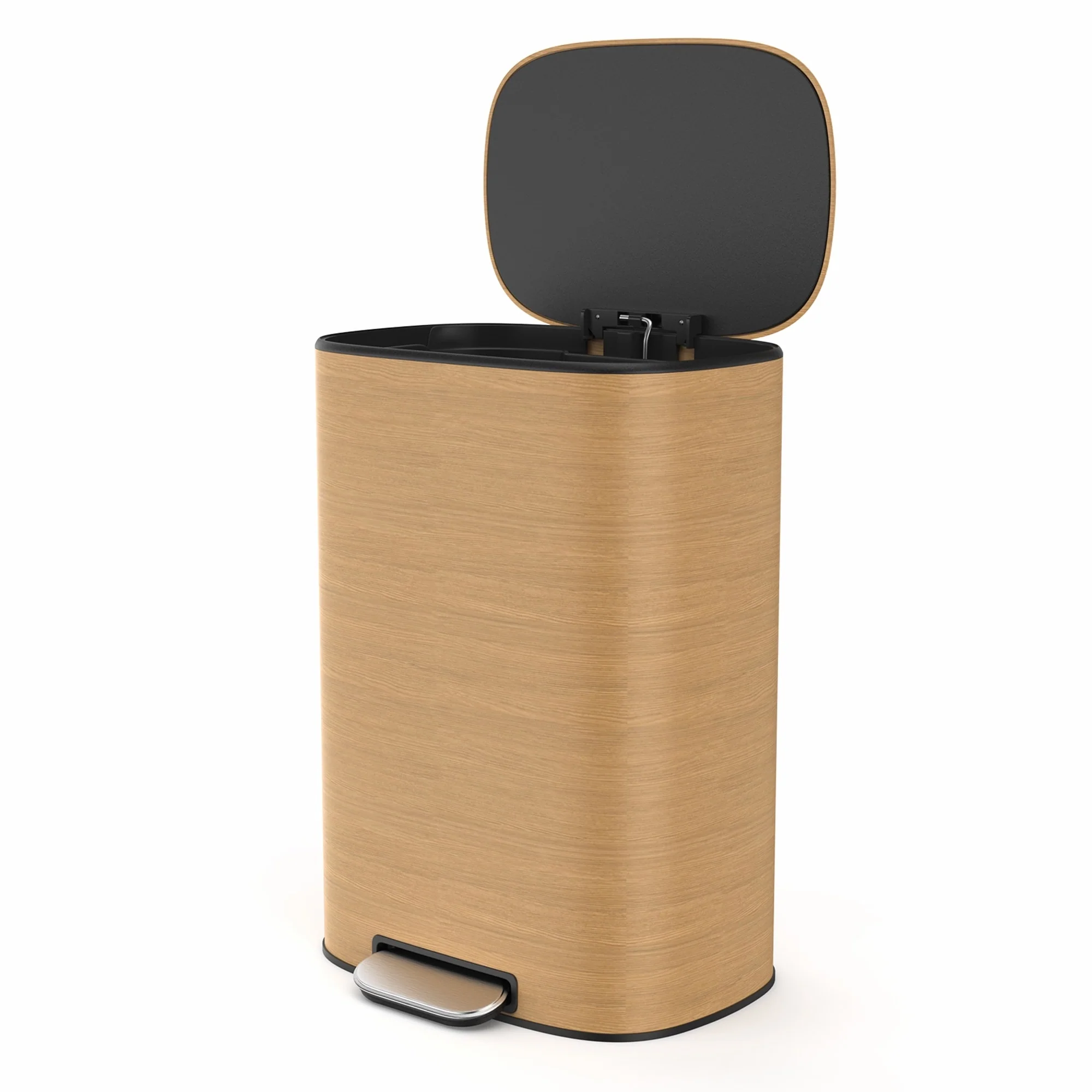 【Product Features】★13.2 gallon/50 liter. The huge capacity definitely meets your daily use, this can fits most brands of 13 gallon trash bags. It can be a good helper for your kitchen and make your room clean and tidy. The sophisticated rectangular appearance also makes it suitable for a variety of occasions. It makes a shining impression from the outside.★Lid features a stay-open mode to easily remove and replace garbage bags and dispose waste. Soft-close lid reduces noise from opening/closing and extends product life span. The lid closes with hardly any sound, if the person next to you is taking a nap, there is no need to worry about disturbing them with this bin.★Rectangular stainless steel trash can with manual foot lever. Fingerprint-proof, smudge resistant, and durable stainless steel exterior. Heavy-duty plastic interior bucket can be easily removed for convenient waste disposal. Removable plastic liner and stay open lid lock make bag changes and cleaning easy.★High quality all stainless-steel thickened trash can body by 0.45MM stainless steel material production. Compared to most 0.3MM materials trash can on the market, our stainless steel trash can are less prone to deformation and are stronger in use! High-quality 410 stainless steel and ABS construted, our trashcan is build to last!【Keep it looking its best】1.Fabric furniture Care;Dust regularly. Clean gently with a clean, slightly damp cloth. Professional cleaning is recommended.2.Wood Furniture Care:We recommend dusting frequently with a clean, soft, dry, lint-free cloth. Clean the surface by rubbing in the direction of the grain and wipe dry.3.Avoid direct sunlight.4.Avoid the use of all chemicals, household cleaners, abrasives, or cleaners that contain lemon, vinegar, or other acids that may damage the finish.5.Do not place hot appliances, such as curling irons and hot hair dryers directly on the countertop.6.Spot clean using distilled water and water-based cleaning agents, foam or mild water-free cleaning solvents. 7.Always test a small inconspicuous area first.8.Hardware may loosen over time; periodically check to make sure all connections are tight【Notes】1.Size Notice:Manual measurement has been used, there may be some reasonable errort, thanks for your understanding.2.Color Notice:Due to factors such as display equipment and shooting environment, the color of the item may be slightly different from the picture, which is a normal phenomenon, please refer to the actual item3.Assembly Notice:Please read assemble manual in advance. Please do not over-tighten nuts, as this may cause distortion or breakage.4.It is recommended to put a layer of foam or soft cushion on the floor when installing to avoid scratching the floor.5.If the item has any defects, damage or missing parts, please contact us with pictures or videos so that we can understand your needs and help you quickly, and always remember to retain its original packaging to ensure any return requests. We will try our best to solve any problems you may have.6.If you receive the wrong product, please attach the product picture, the infographic of the outer package and the picture containing SKUs, so that we can verify and quickly deal with it for you