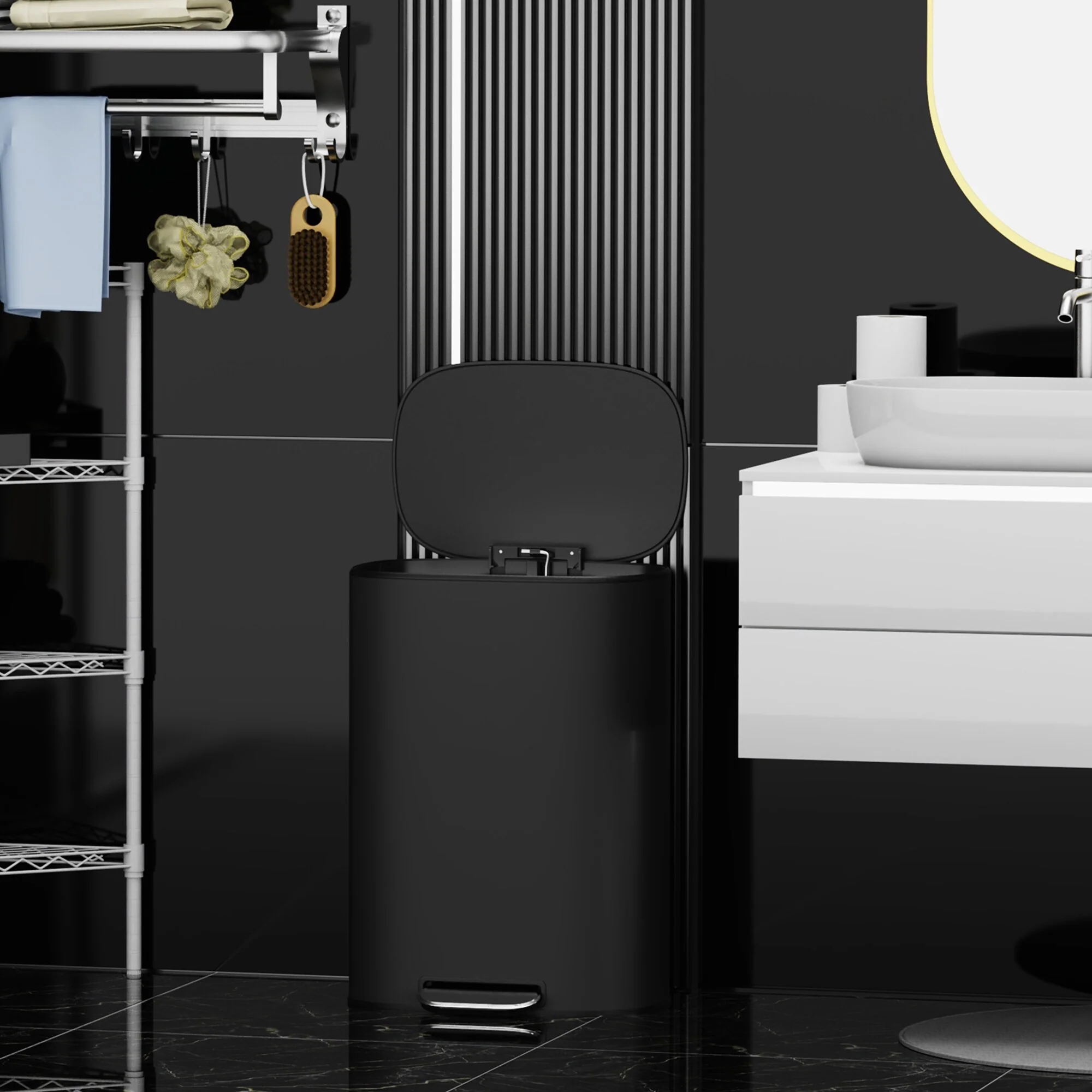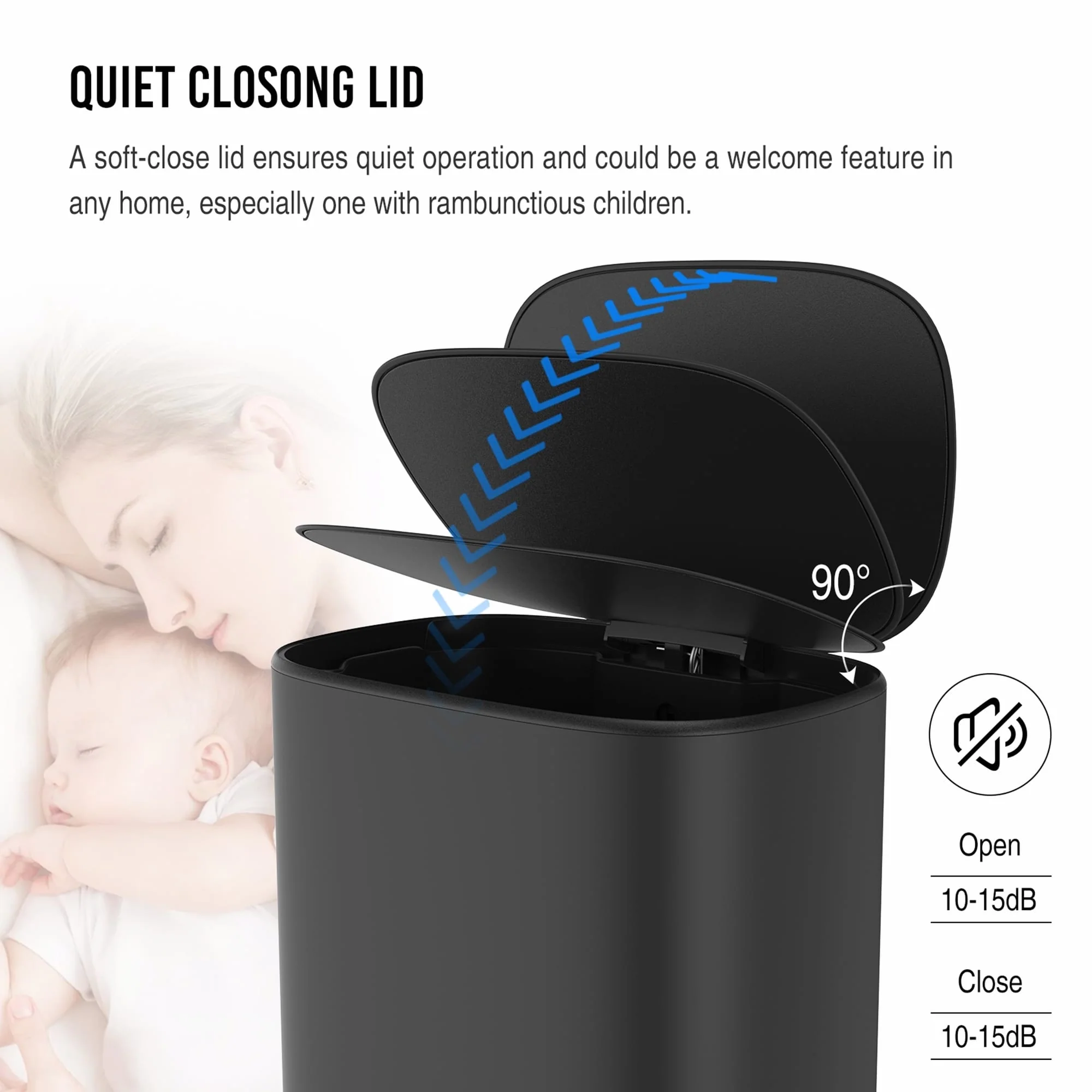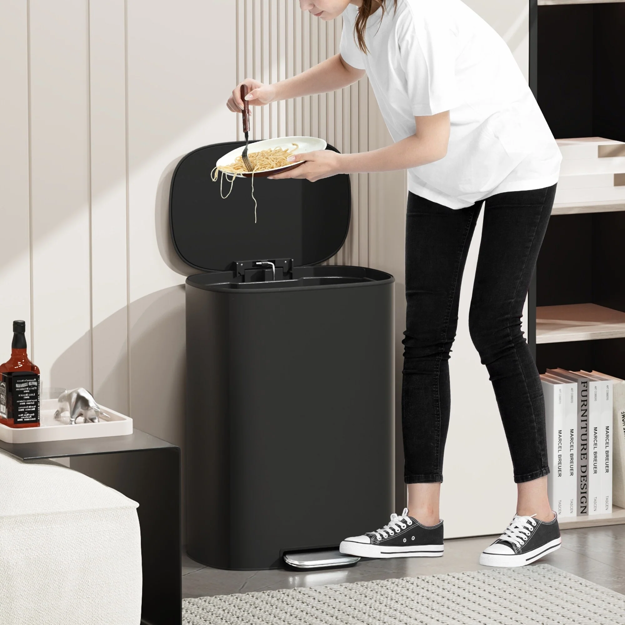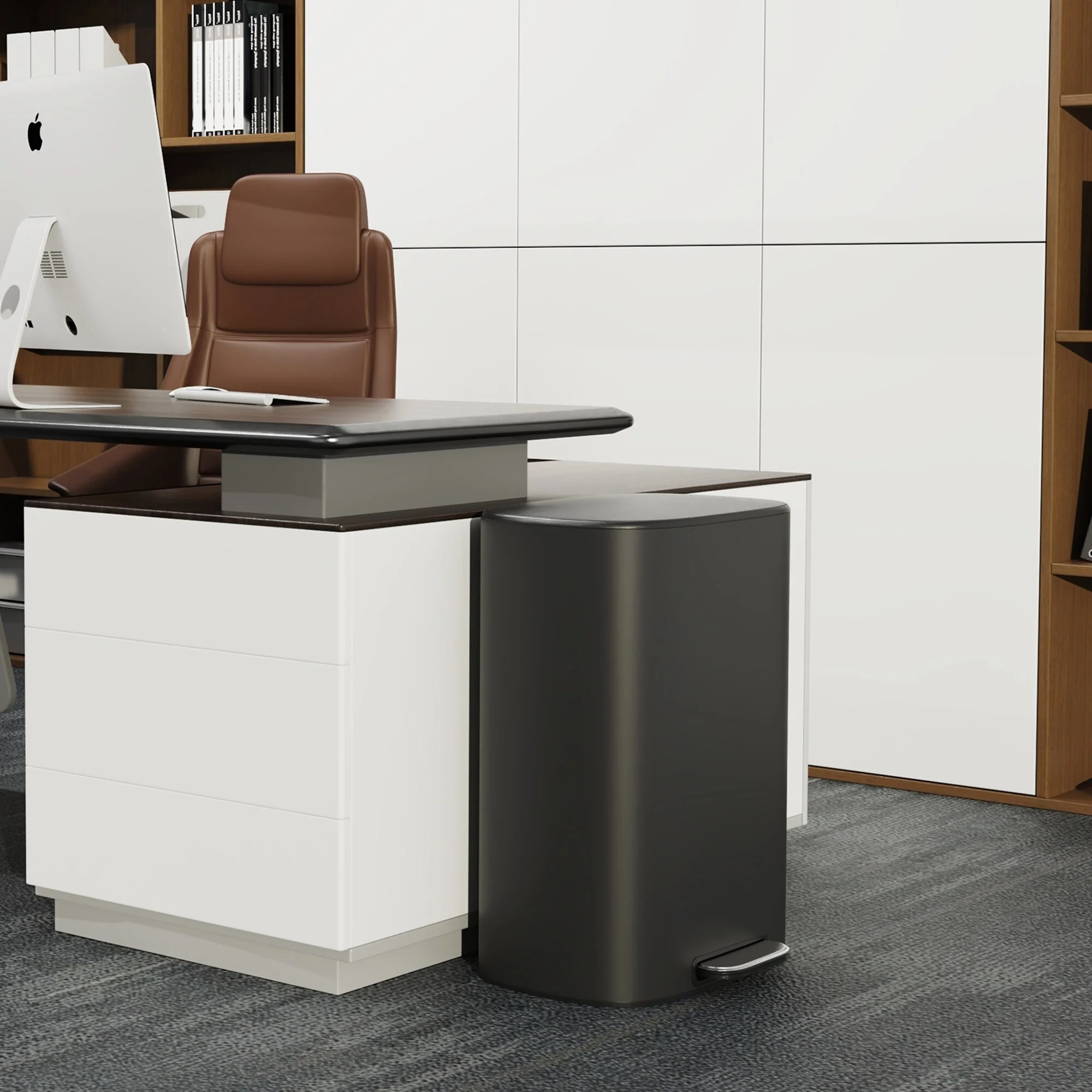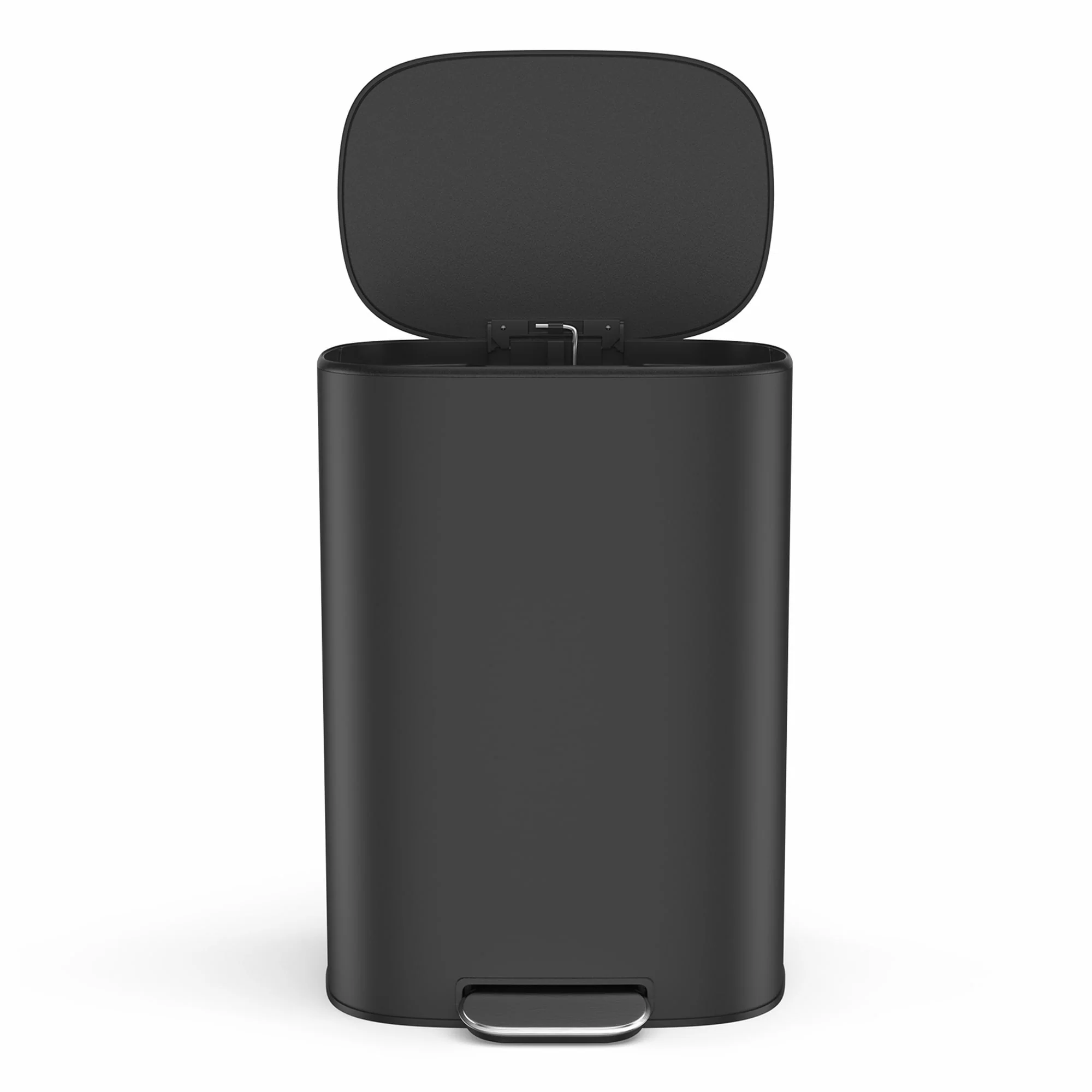 【Product Features】★[LARGE CAPACITY TRASH CAN] – 13.2 gallon/50 liter. The huge capacity definitely meets your daily use, this can fits most brands of 13 gallon trash bags. It can be a good helper for your kitchen and make your room clean and tidy. The sophisticated rectangular appearance also makes it suitable for a variety of occasions. It makes a shining impression from the outside.★[SOFT CLOSE MUTE LID] – Lid features a stay-open mode to easily remove and replace garbage bags and dispose waste. Soft-close lid reduces noise from opening/closing and extends product life span. The lid closes with hardly any sound, if the person next to you is taking a nap, there is no need to worry about disturbing them with this bin.★[STEP TRASH CAN] – Rectangular stainless steel trash can with manual foot lever. Fingerprint-proof, smudge resistant, and durable stainless steel exterior. Heavy-duty plastic interior bucket can be easily removed for convenient waste disposal. Removable plastic liner and stay open lid lock make bag changes and cleaning easy.★[THICKENED STAINLESS STEEL GARBAGE CAN] – High quality all stainless-steel thickened trash can body by 0.45MM stainless steel material production. Compared to most 0.3MM materials trash can on the market, our stainless steel trash can are less prone to deformation and are stronger in use! High-quality 410 stainless steel and ABS construted, our trashcan is build to last!【Keep it looking its best】1.Fabric furniture Care;Dust regularly. Clean gently with a clean, slightly damp cloth. Professional cleaning is recommended.2.Wood Furniture Care:We recommend dusting frequently with a clean, soft, dry, lint-free cloth. Clean the surface by rubbing in the direction of the grain and wipe dry.3.Avoid direct sunlight.4.Avoid the use of all chemicals, household cleaners, abrasives, or cleaners that contain lemon, vinegar, or other acids that may damage the finish.5.Do not place hot appliances, such as curling irons and hot hair dryers directly on the countertop.6.Spot clean using distilled water and water-based cleaning agents, foam or mild water-free cleaning solvents. 7.Always test a small inconspicuous area first.8.Hardware may loosen over time; periodically check to make sure all connections are tight【Notes】1.Size Notice:Manual measurement has been used, there may be some reasonable errort, thanks for your understanding.2.Color Notice:Due to factors such as display equipment and shooting environment, the color of the item may be slightly different from the picture, which is a normal phenomenon, please refer to the actual item3.Assembly Notice:Please read assemble manual in advance. Please do not over-tighten nuts, as this may cause distortion or breakage.4.It is recommended to put a layer of foam or soft cushion on the floor when installing to avoid scratching the floor.5.If the item has any defects, damage or missing parts, please contact us with pictures or videos so that we can understand your needs and help you quickly, and always remember to retain its original packaging to ensure any return requests. We will try our best to solve any problems you may have.6.If you receive the wrong product, please attach the product picture, the infographic of the outer package and the picture containing SKUs, so that we can verify and quickly deal with it for you