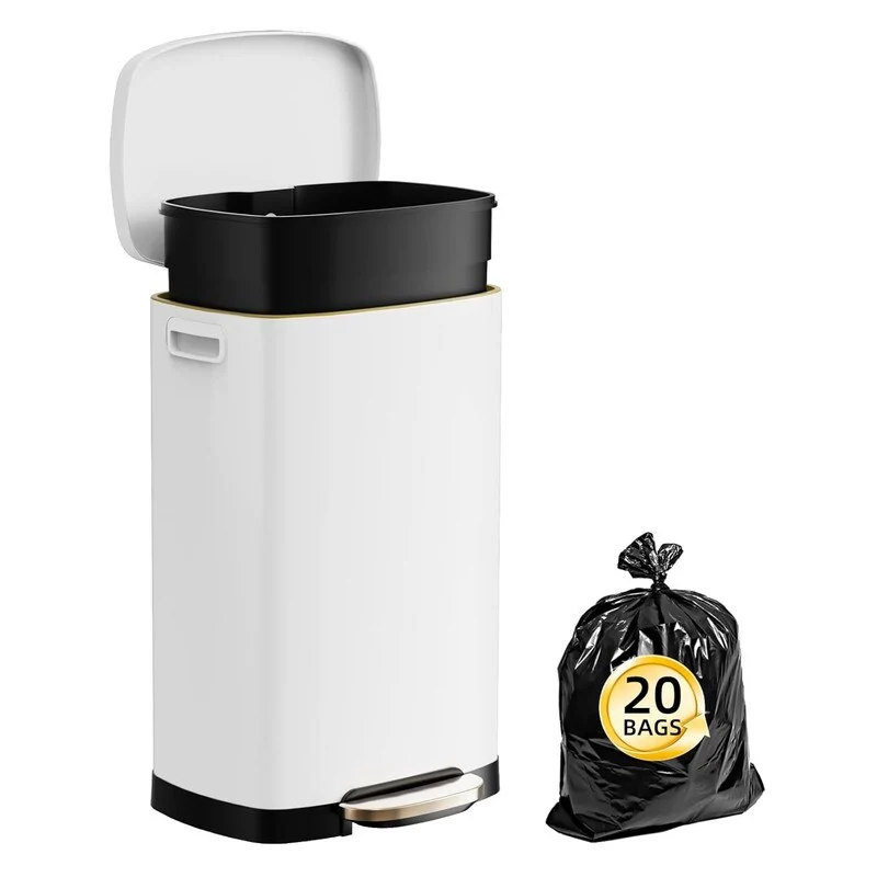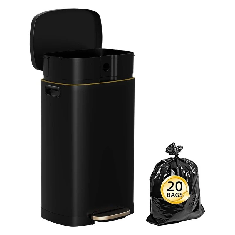 【Comes with 20 garbage bags】Garbage bags suitable for 13 Gallon trash can included.Even if the garbage fills the entire garbage bag, our high-quality garbage bags can withstand it.The regular 13-gallon garbage bag in the supermarket can be used in our stainless steel trash can.