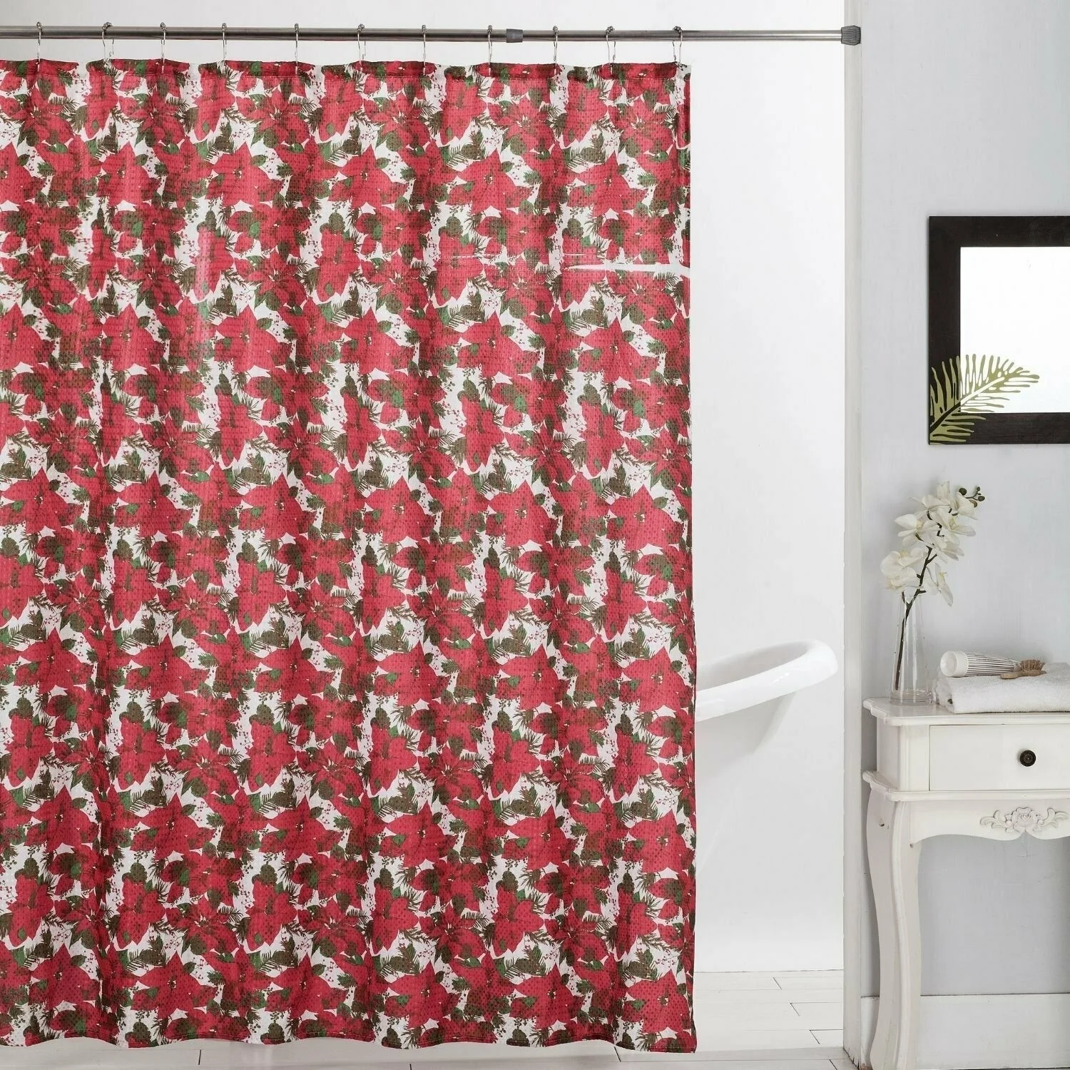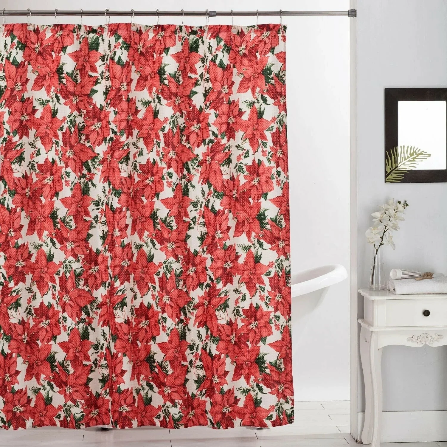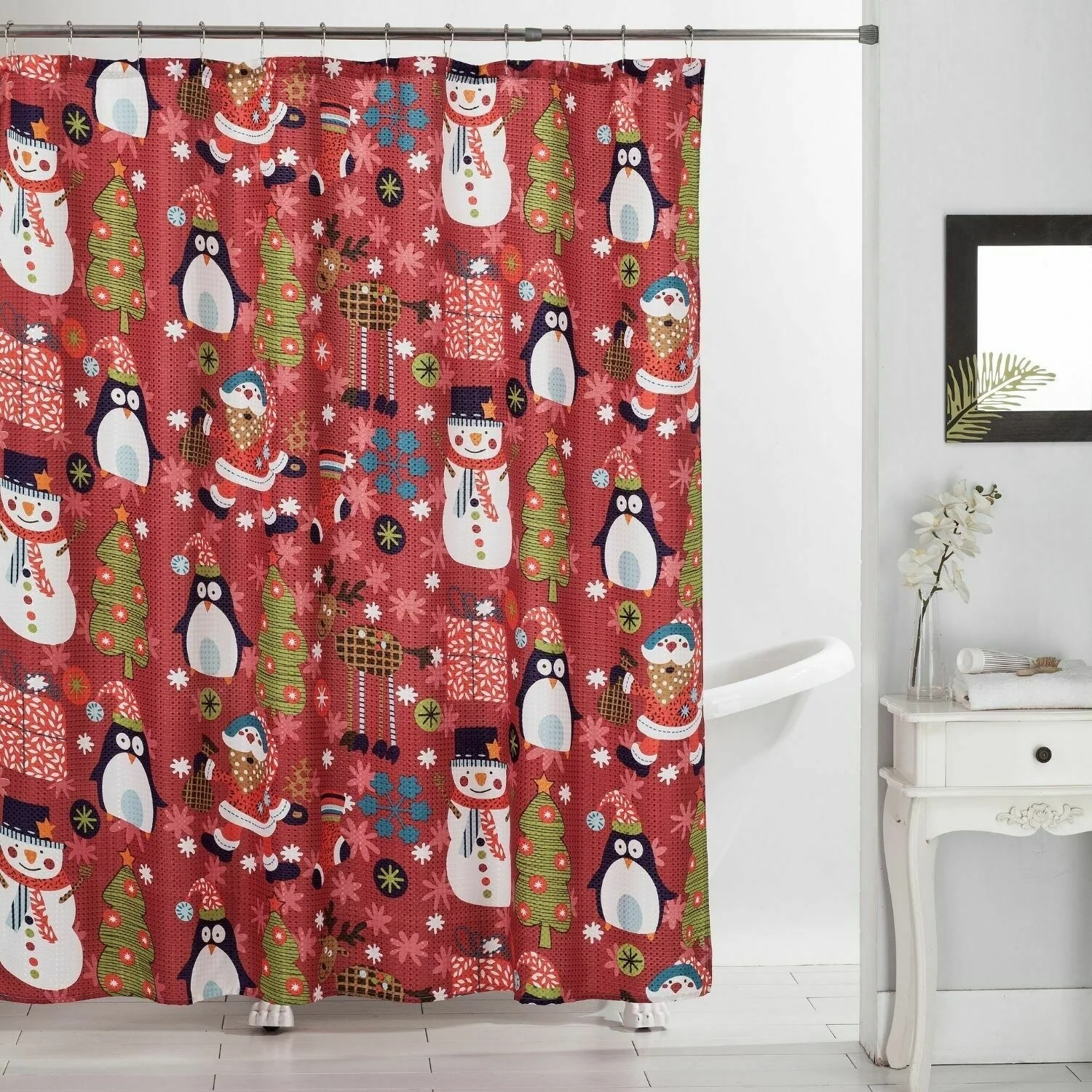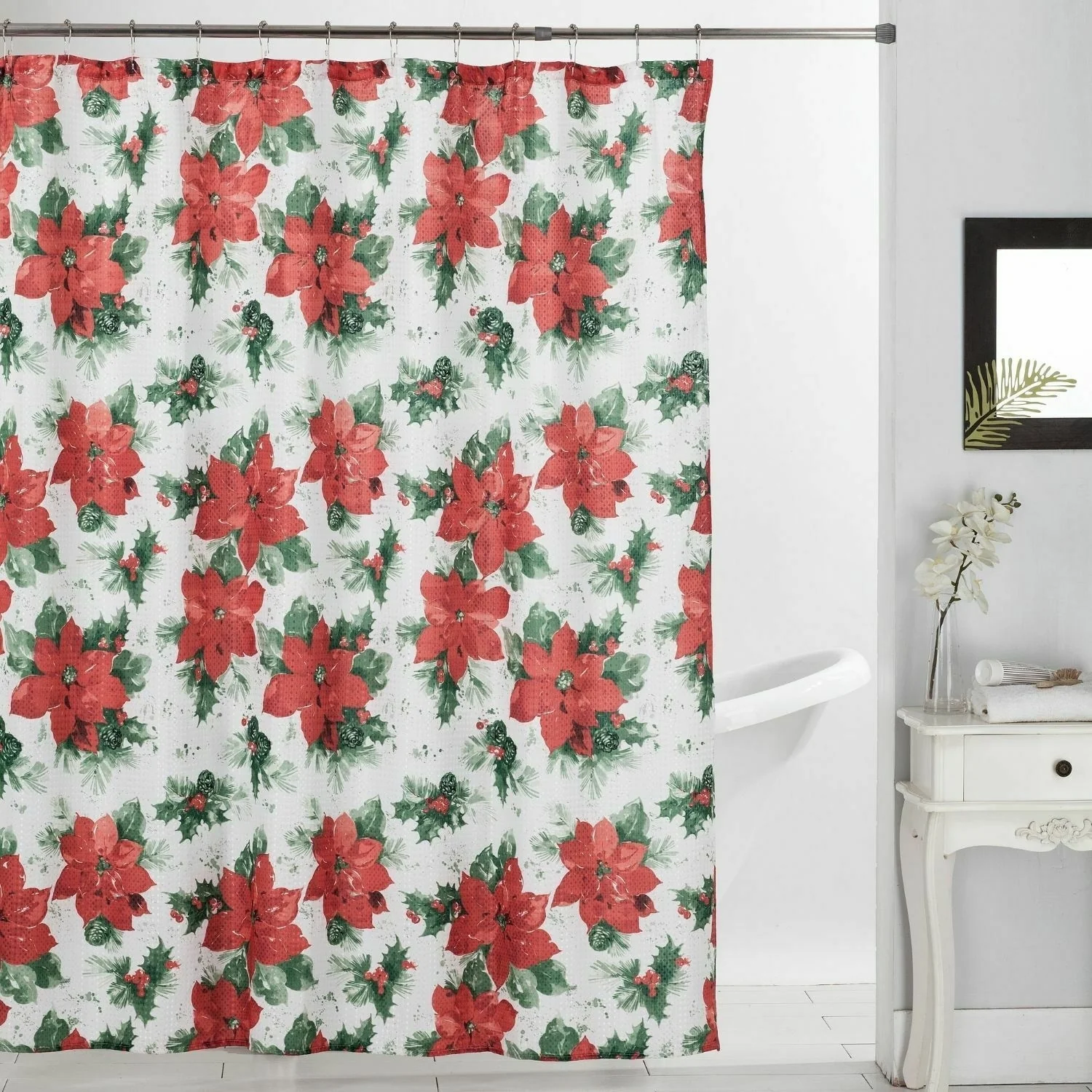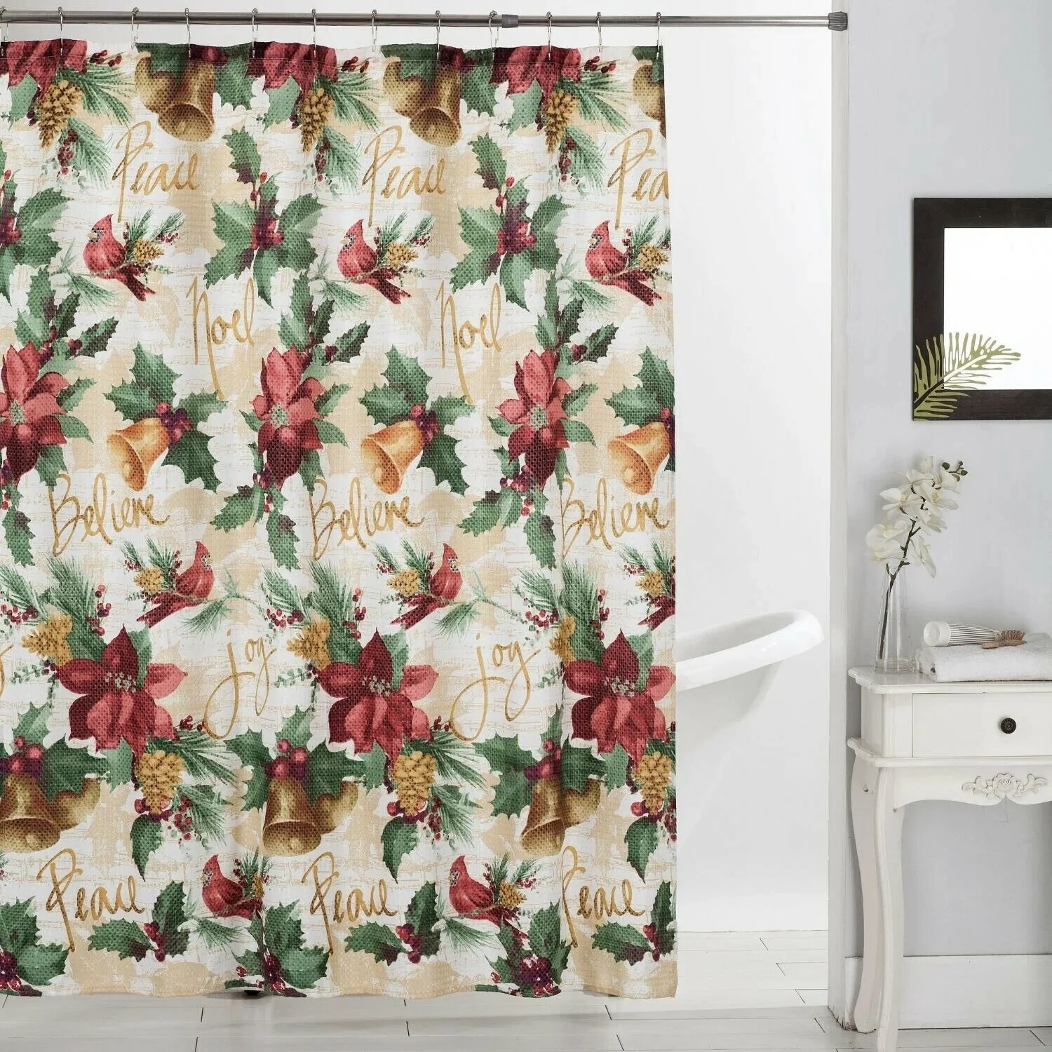 - Complete Holiday Set: This 13-piece set includes a dobby printed shower curtain and metal roller hooks for a hassle-free holiday bathroom makeover.