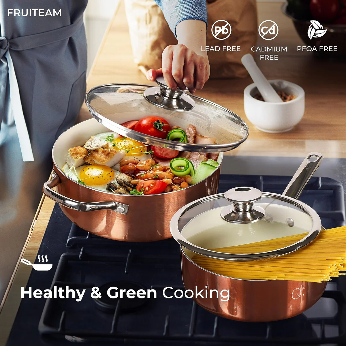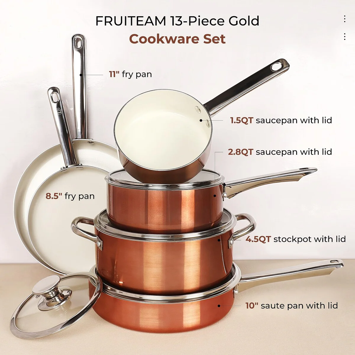 13-Piece Cookware Set Non-stick Ceramic Coating Cooking Set,Induction Pots Pans Set with Lids,Heavy Duty Stainless Steel Handles