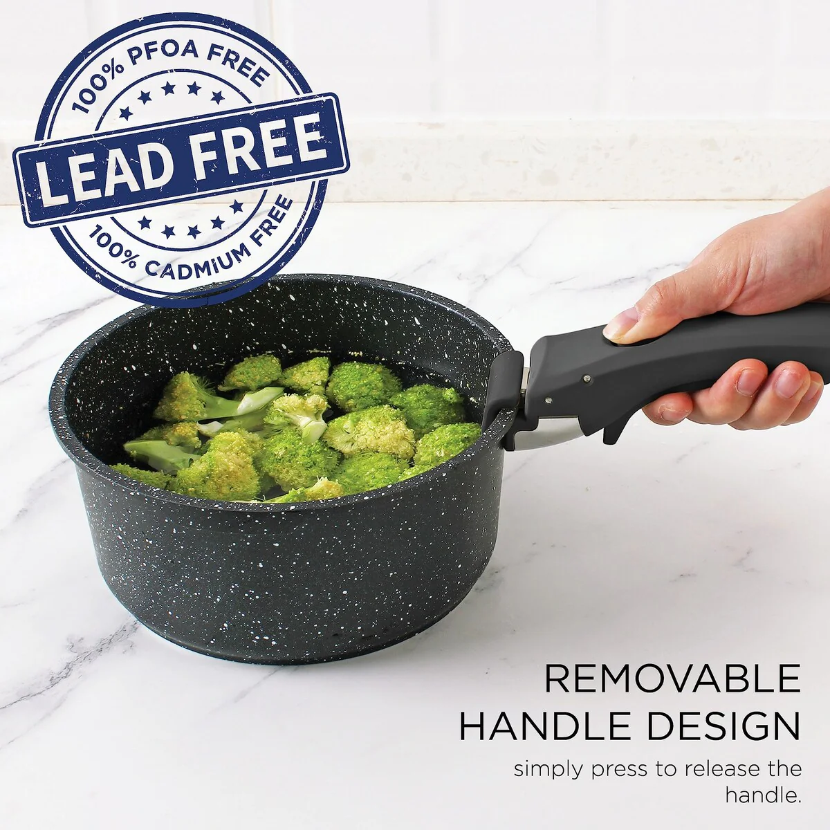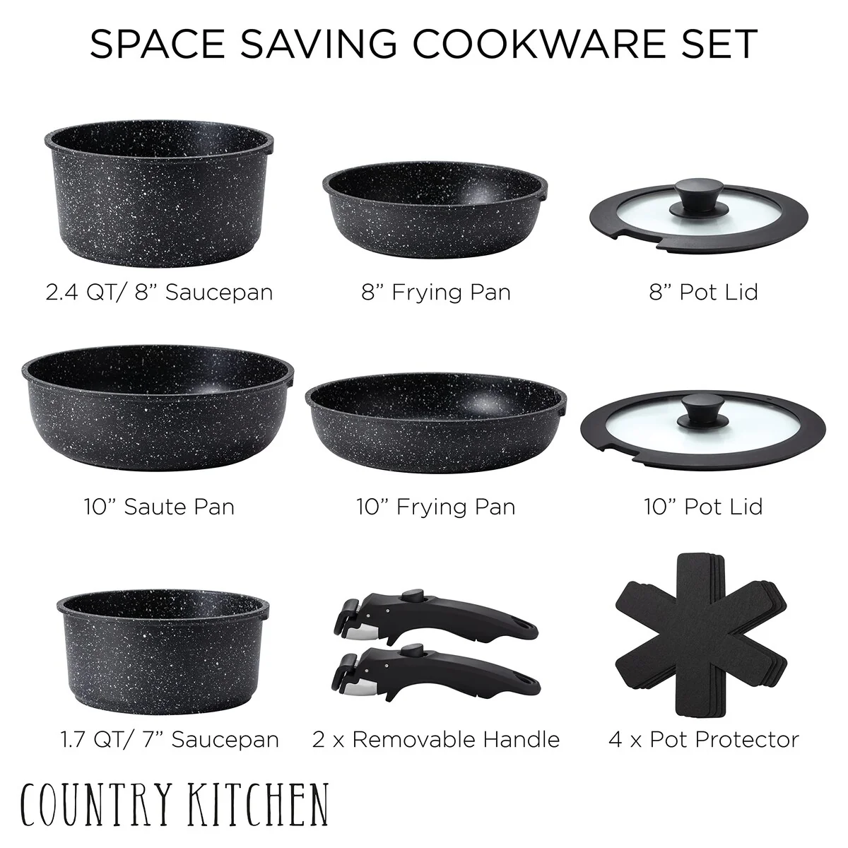 Optimal Storage: With our stackable cookware set with detachable handle, you can finally declutter your kitchen cabinets while still having all the cookware you need.