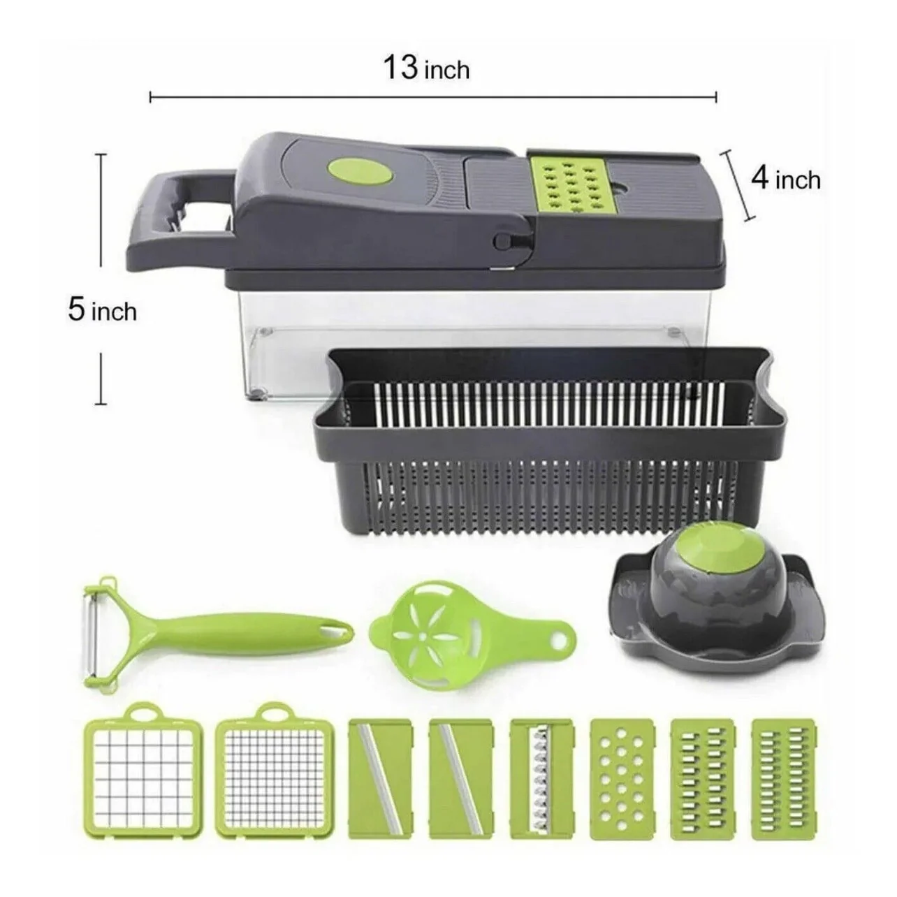 - Introducing our 14-in-1 Vegetable and Fruit Chopper Cutter – the ultimate kitchen companion for efficient and versatile food preparation. This all-in-one tool is designed to streamline your chopping, slicing, and dicing tasks, making cooking a breeze.