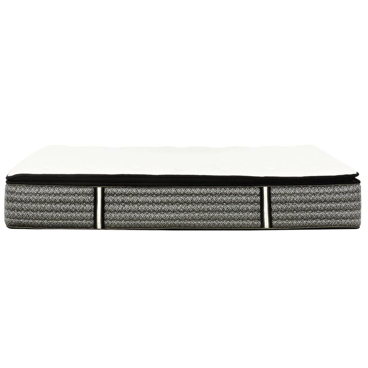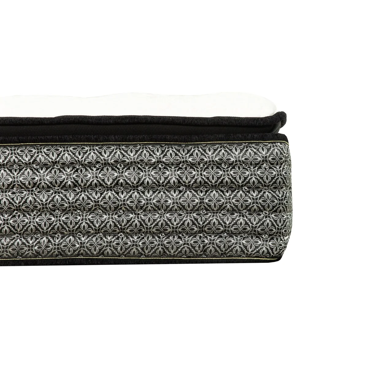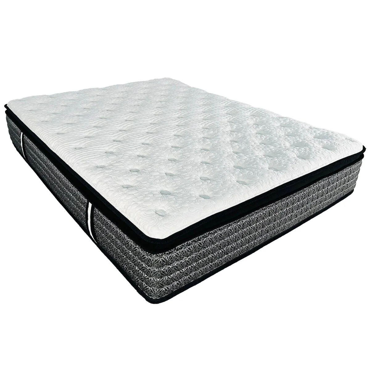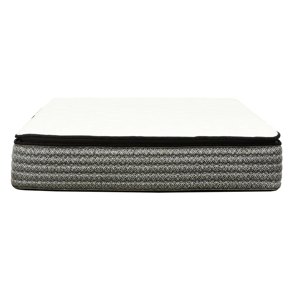 Introducing this 14 in. Pillowtop Mattress, your gateway to serene and rejuvenating nights. Redefine your sleep experience with this luxurious mattress that combines pocket coil with layers of foam and gel memory foam, ensuring a truly restorative night’s rest. Featuring a sophisticated design, this boasts a sleek Black border and a plush white knit fabric top, exuding elegance that complements any bedroom decor. Its 14-inch profile strikes the perfect balance between comfort and support, providing the ultimate sleep surface for your comfort. Experience unparalleled coziness with the pillow top layer, engineered with advanced foam to enhance comfort by optimizing air circulation, resulting in a softer and more inviting sleep surface. The gel memory foam gently cradles your body, relieving pressure points and promoting deep, rejuvenating sleep. Its pocket coil system delivers personalized support by adapting to your body’s contours, minimizing motion transfer while ensuring optimal spinal alignment throughout the night. Each coil works independently, offering tailored comfort for uninterrupted sleep. Conveniently delivered in a compact box for effortless setup, simply unwrap and witness the mattress unfurl to its grandeur within minutes. Discover the secret to revitalizing sleep with this designed to deliver the luxurious rest sleep you crave every night.