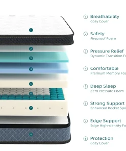 After-sale & Guarantee: A 14-inch foam hybrid mattress with 10 years warranty and passes the CertiPUR-US, and Oeko-Tex Standard 100 certification