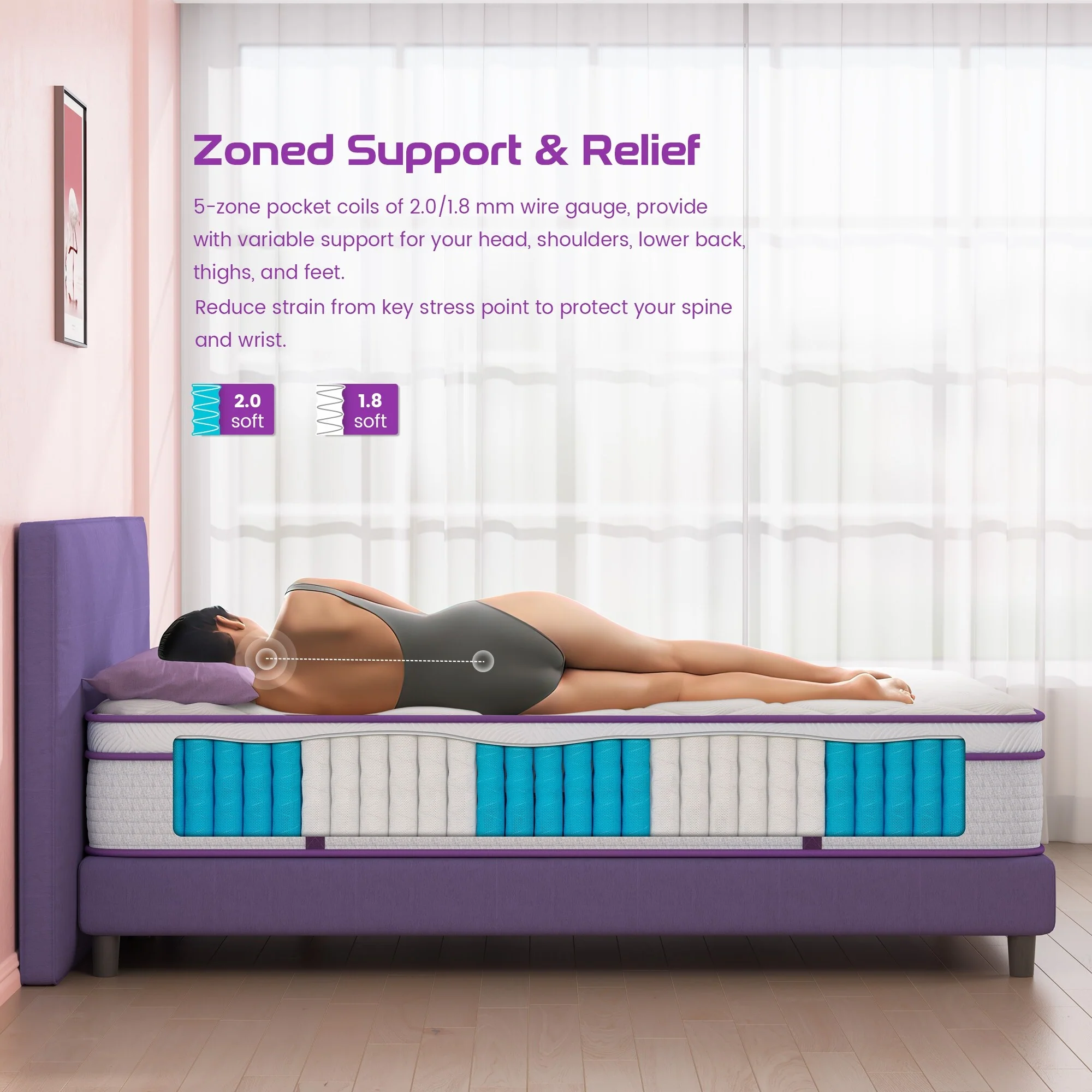 - Motion isolation&Edge Support  with medium firmness,disperses body weight to relieve pressure points