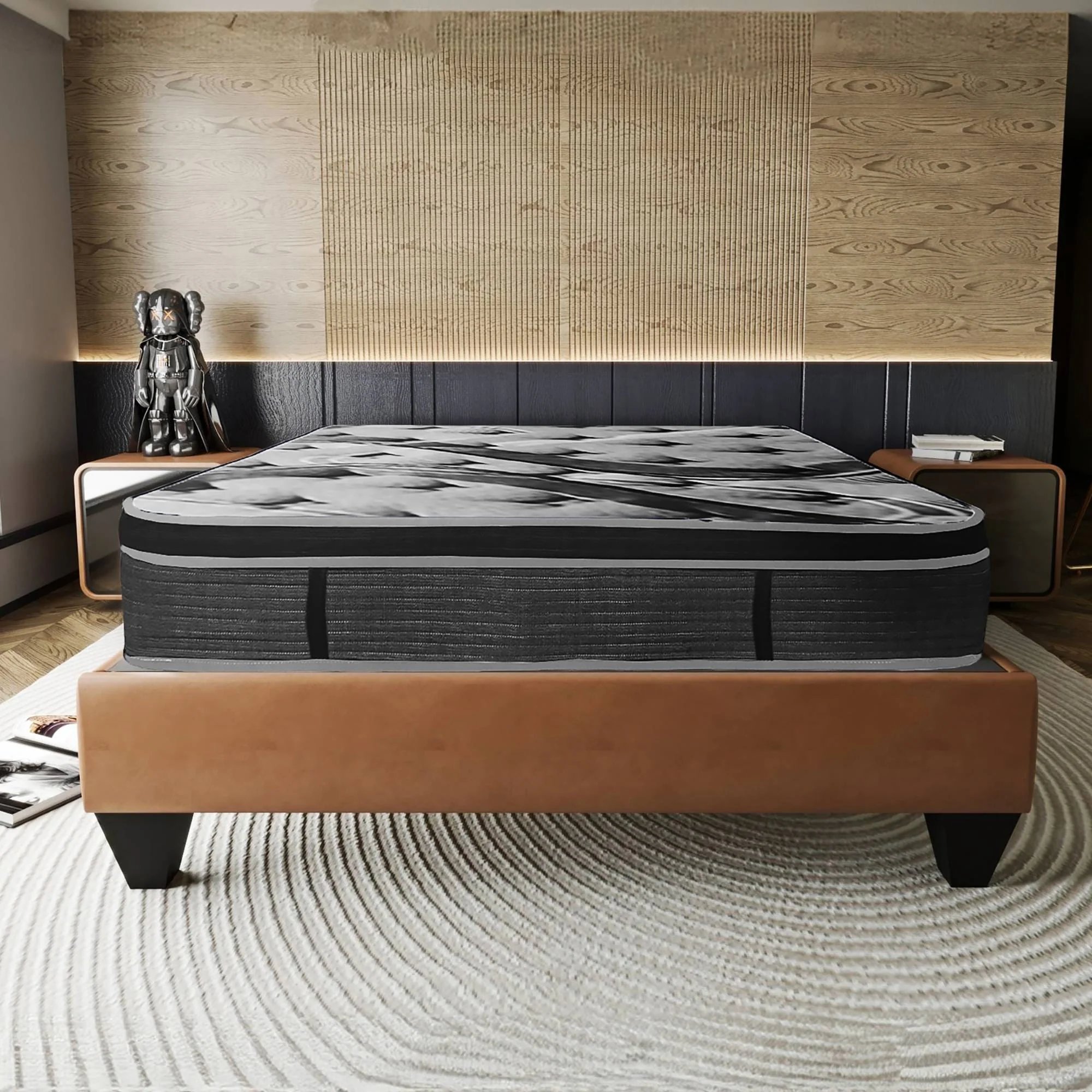 Our 14-inch mattresses feature five-layer construction that consists of: 1.5-inches ventilated ultra-plush gel-infused memory foam, 2-inches plush gel-infused memory foam, 2-inches plush foam, 6.3-inch 12.25-gauge pocket coils and 2.2-inches of high-density base foam – and are offered in Queen, Eastern King and California King.