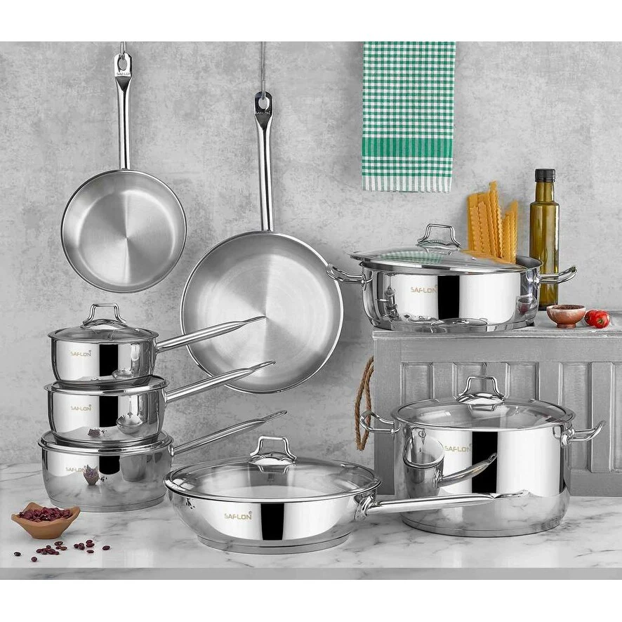 14-Piece Stainless Steel Assorted Cookware set with Glass Lids
