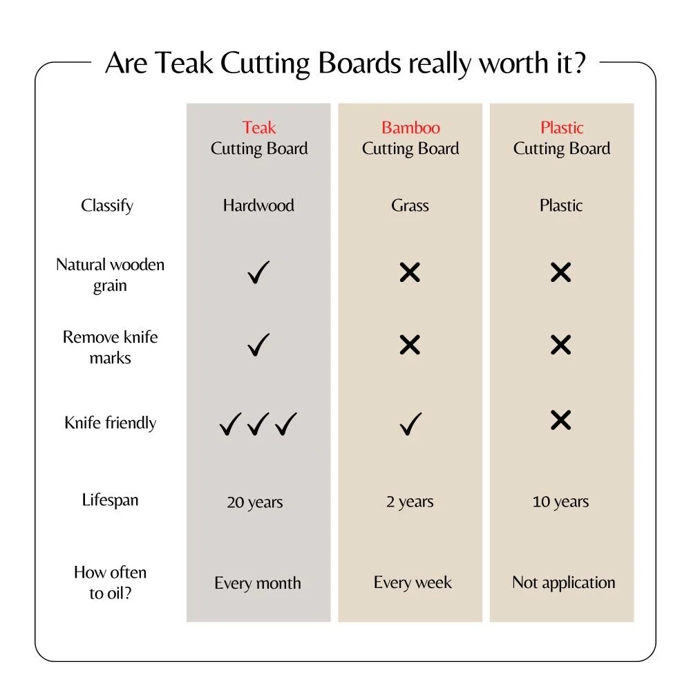 Board features – 100% teak wood natural pattern which sourced from plantation forest; rustic boards with juice groove; smooth polish no sharp edge thorn splinter; Easy-to-grip design for better grab no-slip convenient holding; solid wooden platter; food-grade safe easy to clean