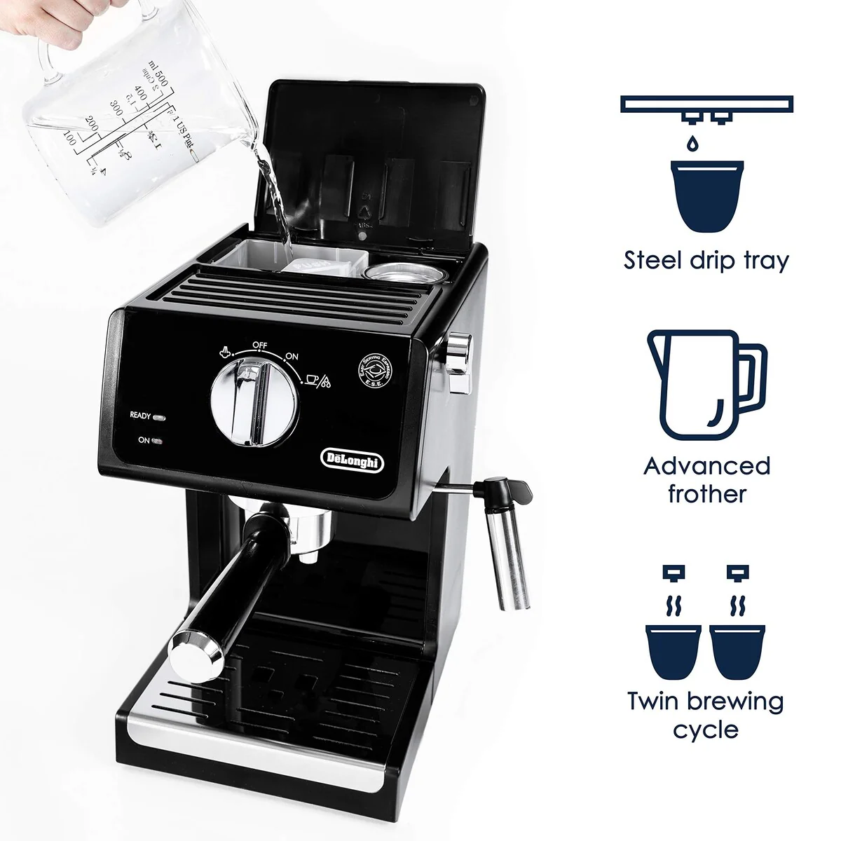 15 Bar Espresso Machine with Advanced Cappuccino System, 9.6 x 7.2 x 11.9 inches, Black/Stainless Steel