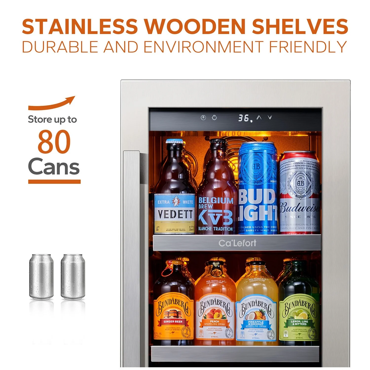 - Versatile Installation & Adjustable Shelves: This beverage cooler can be used both as a freestanding unit or built-in for a customized look. The 4 removable shelves are adjustable to accommodate cans, bottles, or even larger drink containers. Enjoy the flexibility to create the perfect storage solution for your favorite beverages.