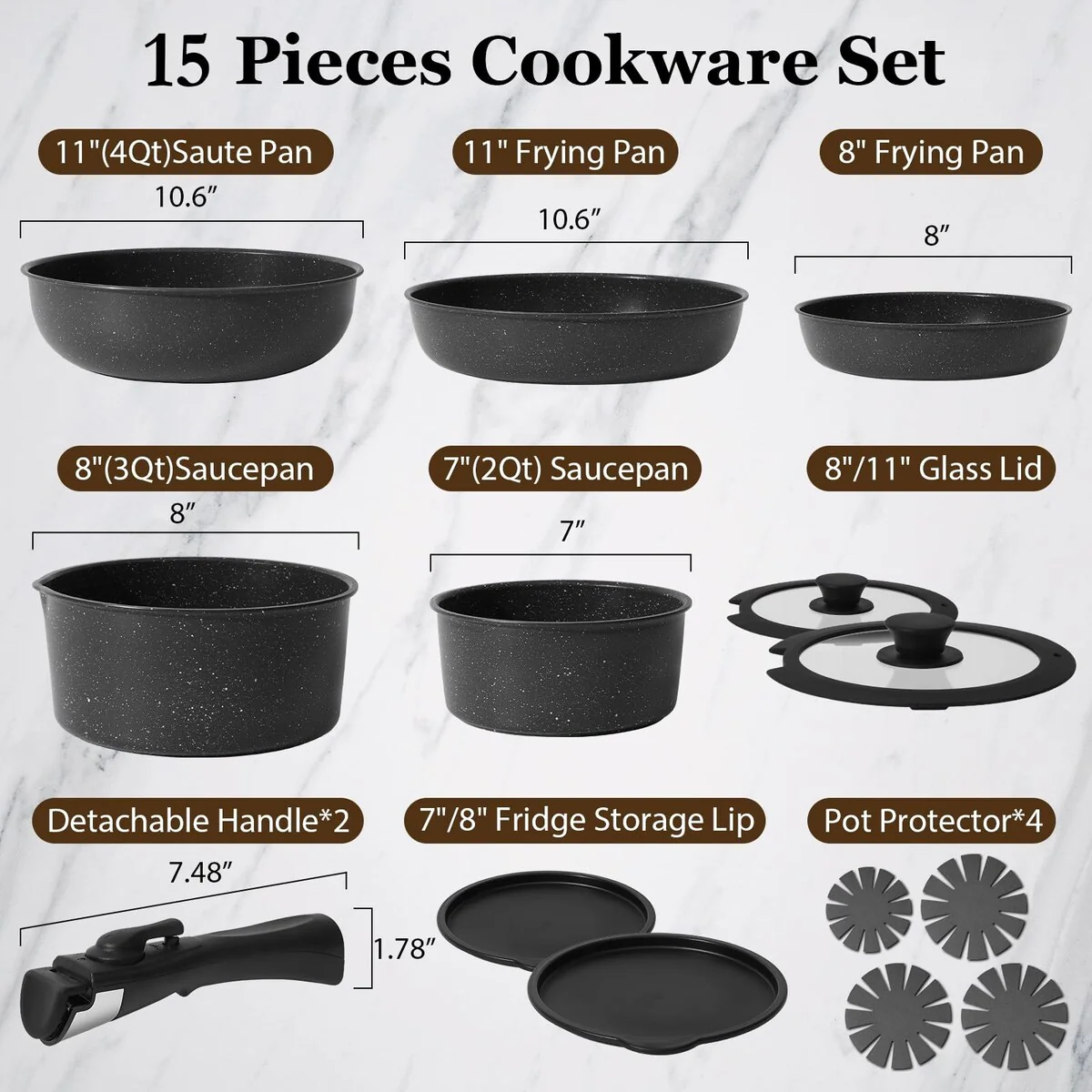 15 Pcs Pots and Pans Set Non Stick,Kitchen Cookware Set Detachable Handle, Nonstick Induction Cookware Cooking Sets