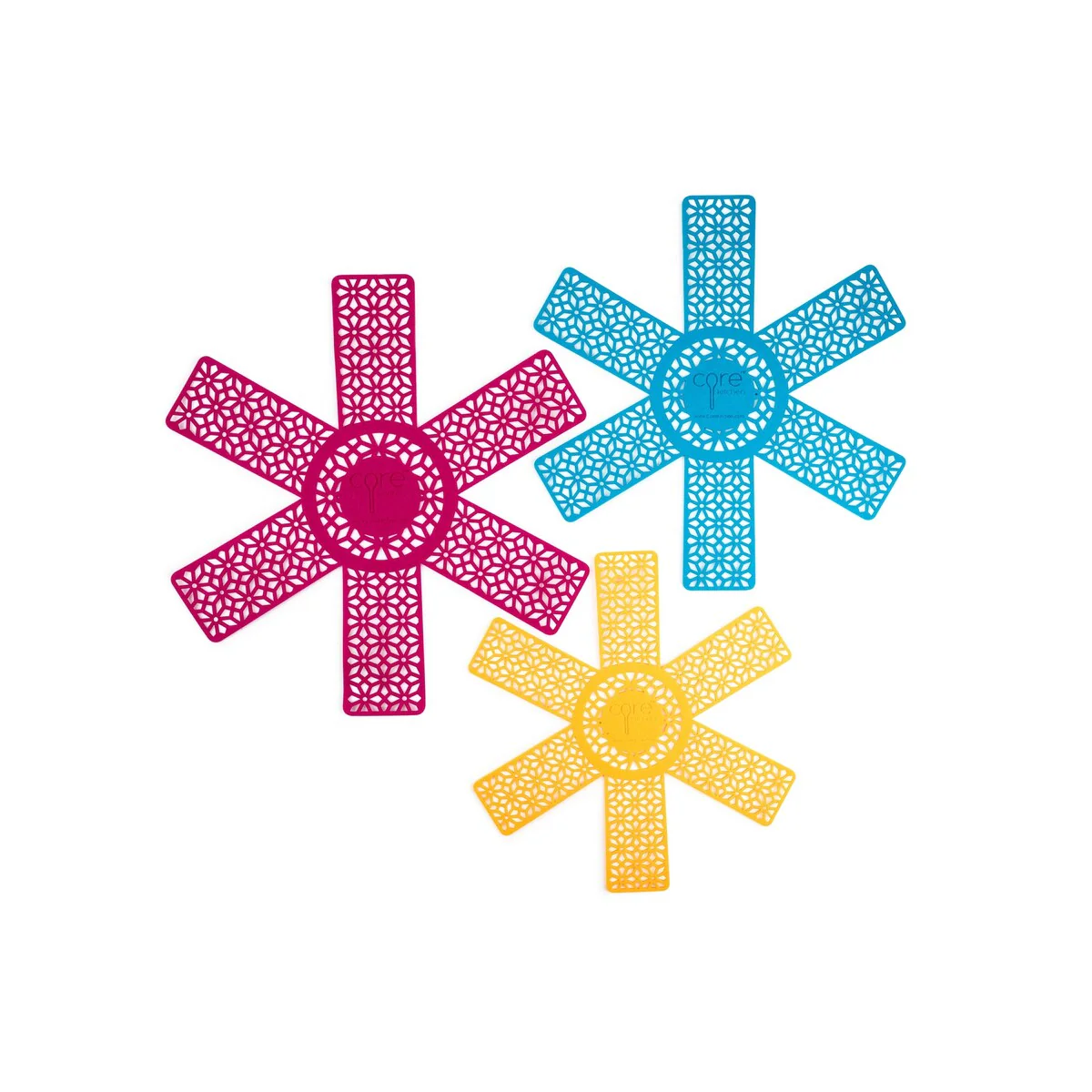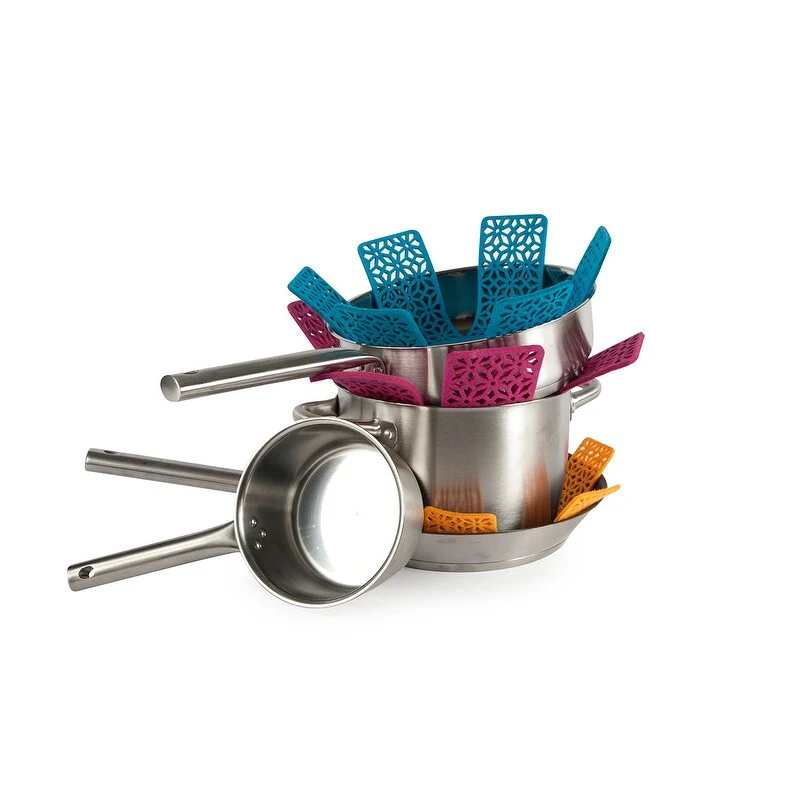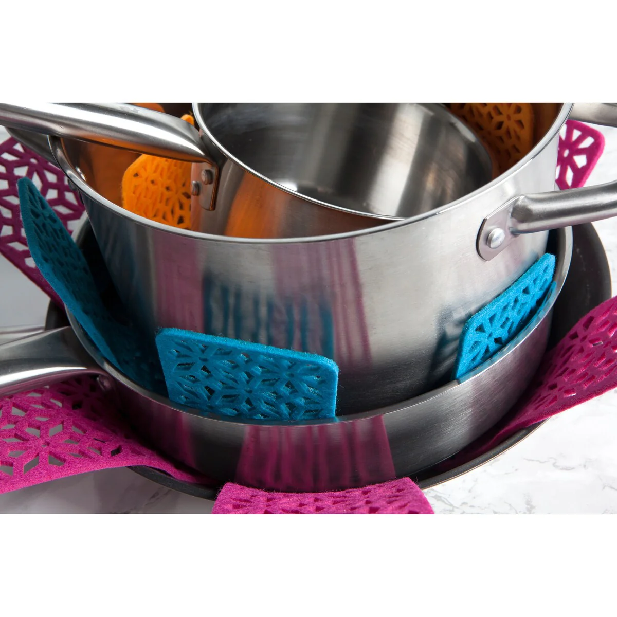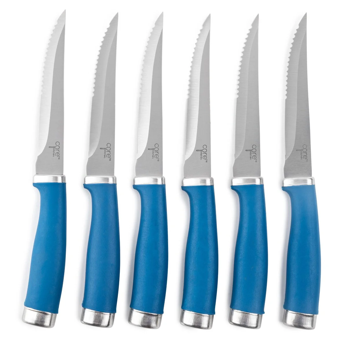 Set of 8" Pluto, 10" Pluto, Ckware protectors, 6 steak knives, 2 Locking tongs, Silicone utensils