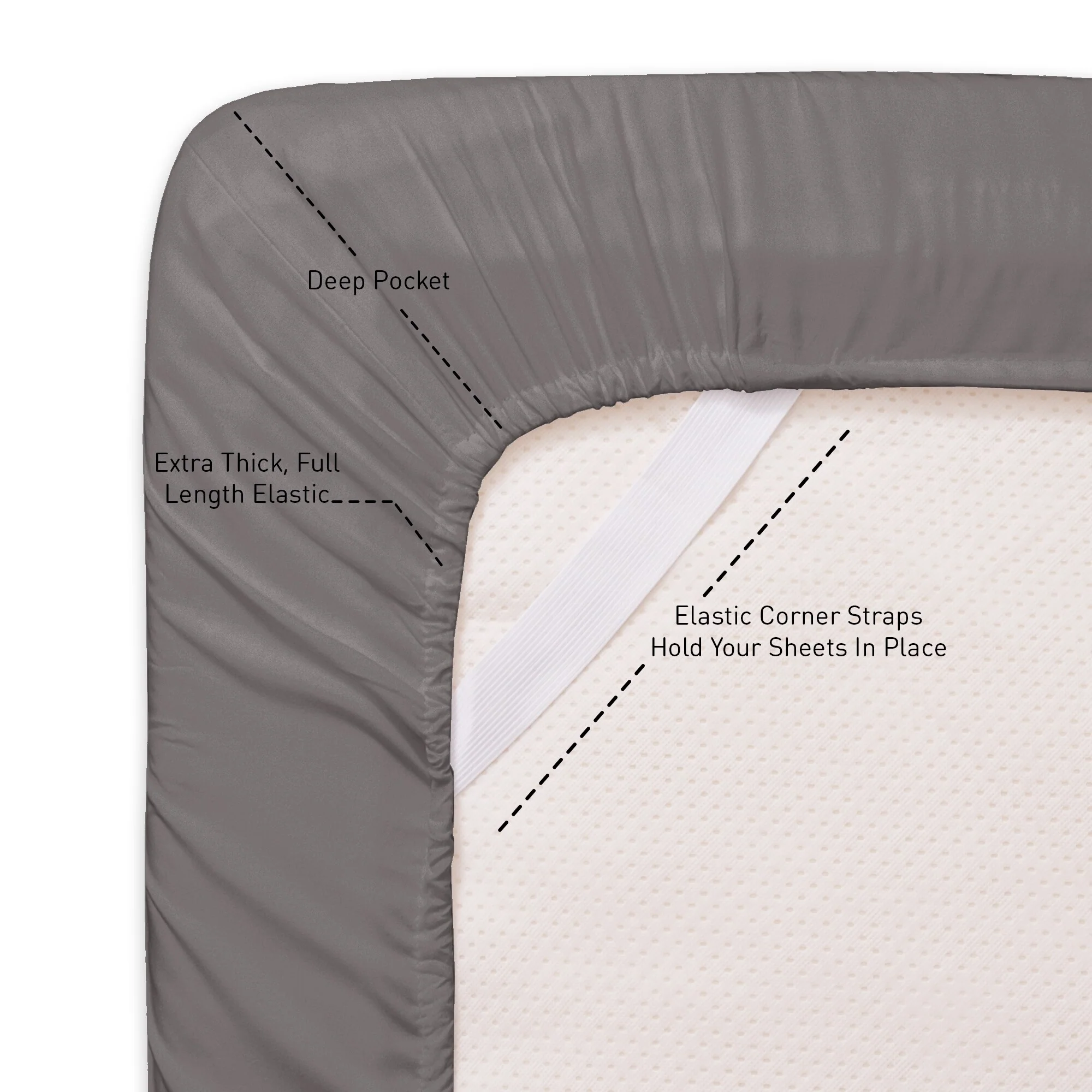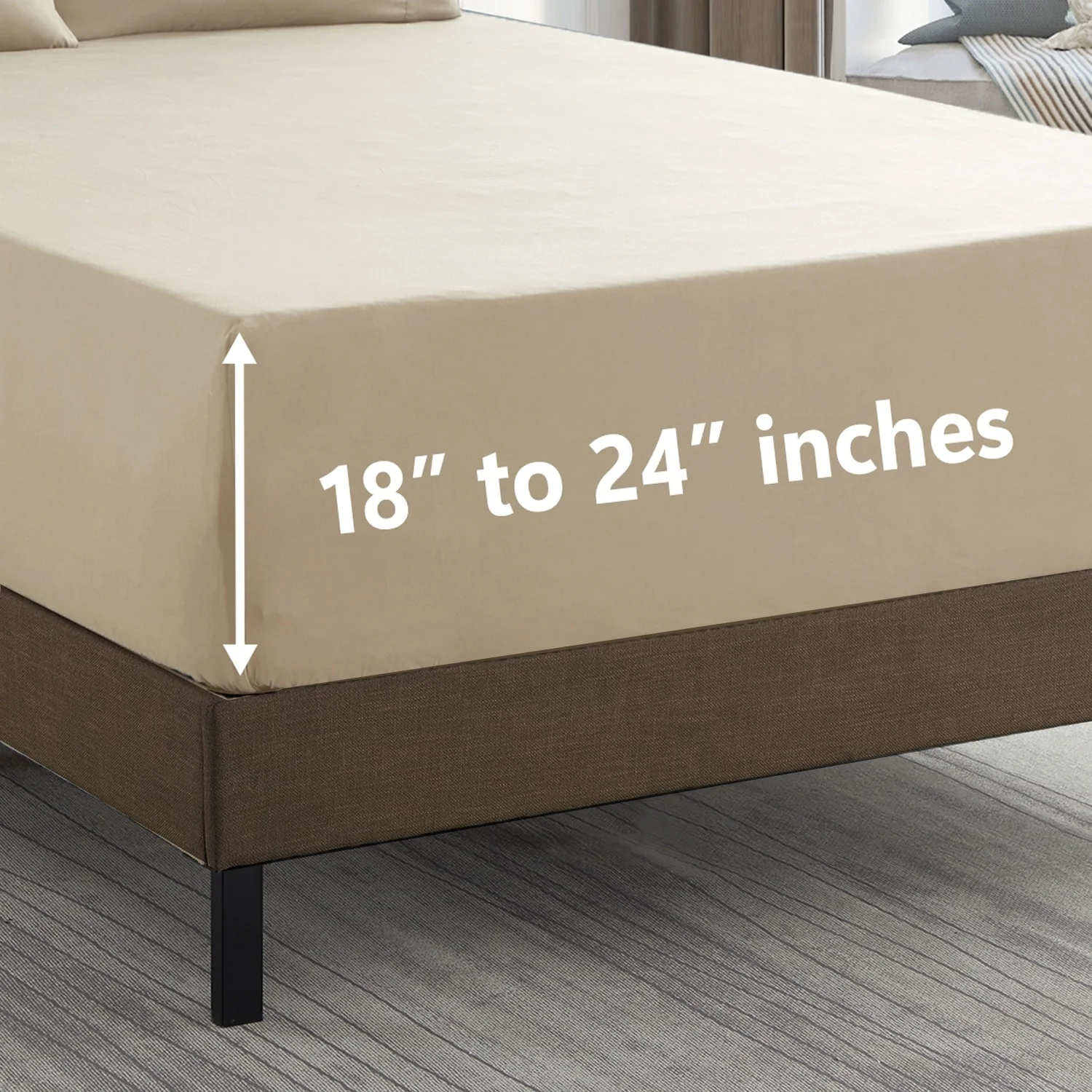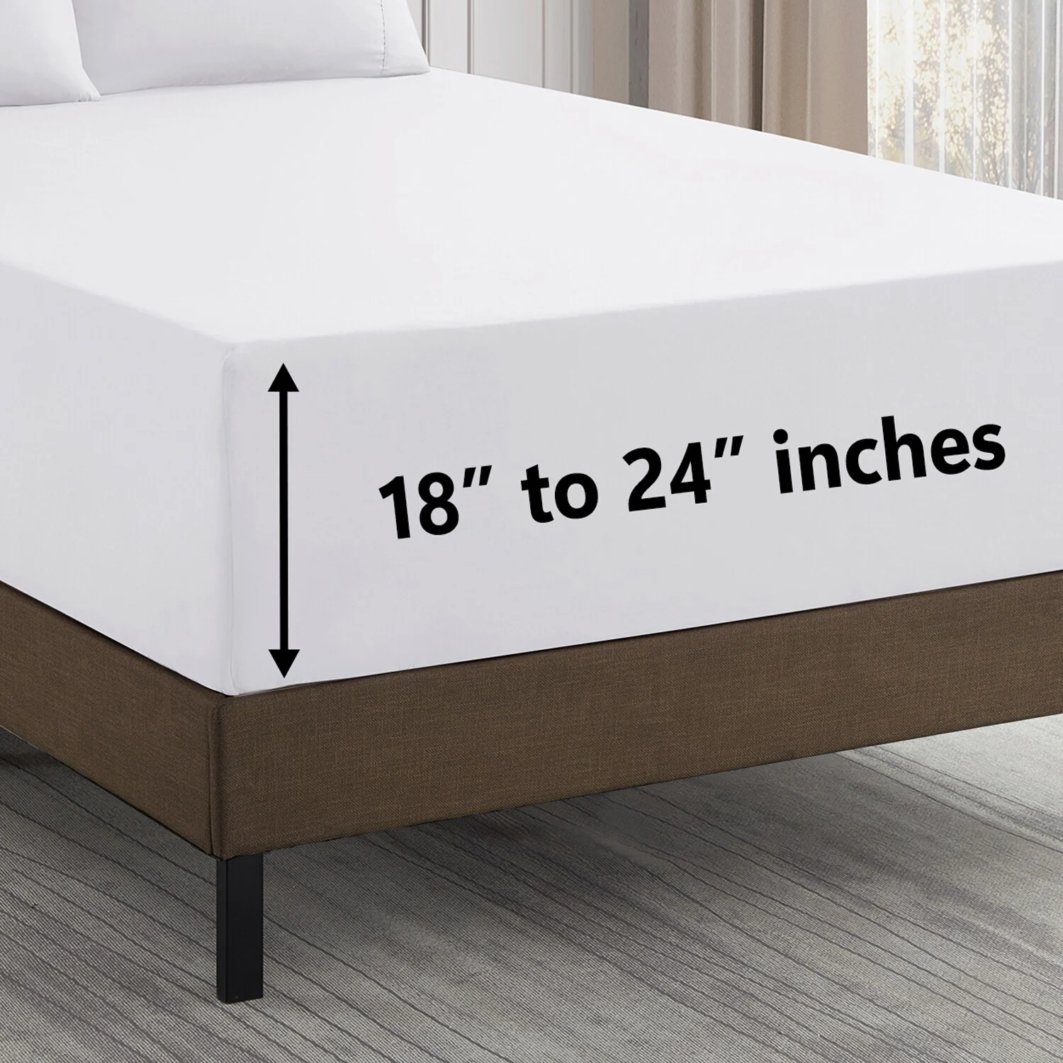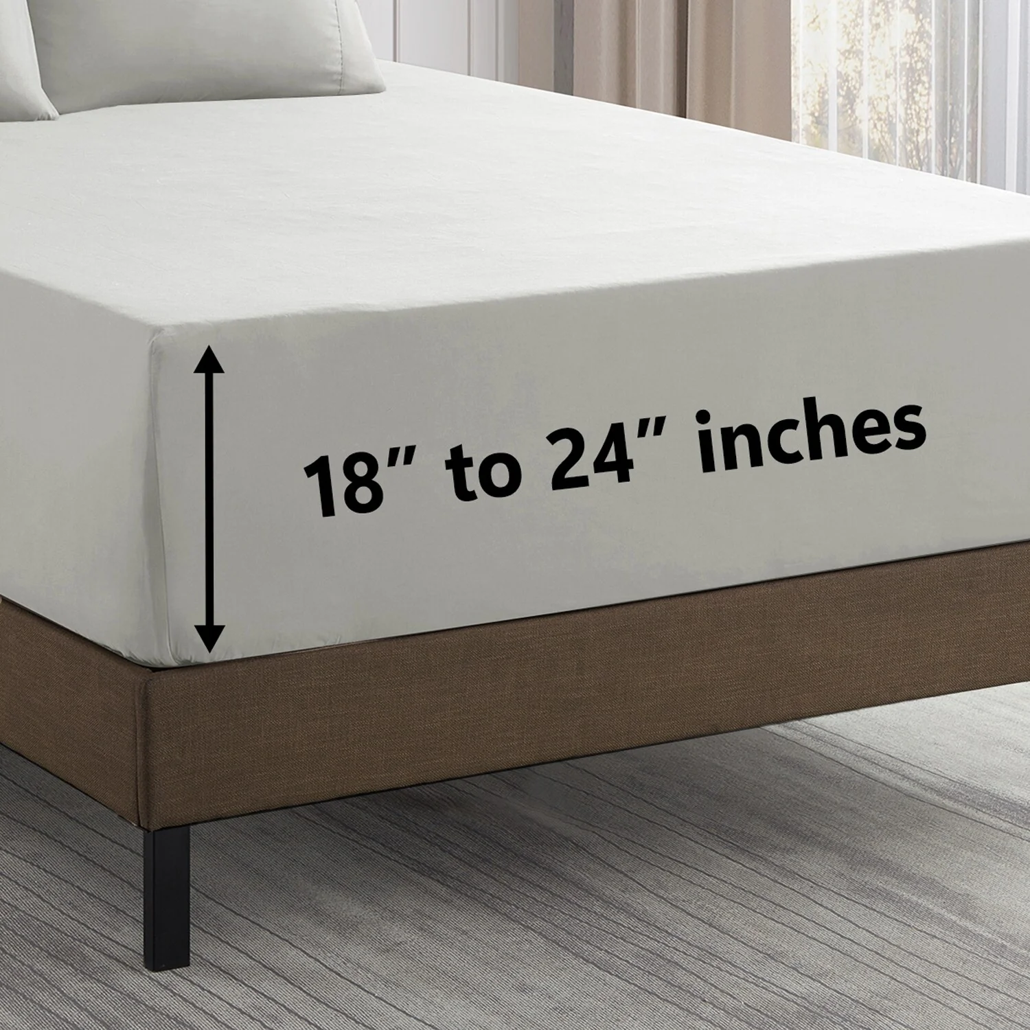 With these luxurious sheets, you’ll experience unparalleled softness and comfort. What sets our Fitted Sheet apart is its thoughtful design. It’s elasticized all the way around and includes four corner straps to ensure a secure fit on your mattress. Plus, our deep pocket can accommodate mattress sizes from 18" to 24" in depth, so you can sleep soundly without worrying about the sheets slipping off. For those with allergies, we’ve got you covered. Our complete bedding set is hypoallergenic, helping you rest peacefully without any irritations.