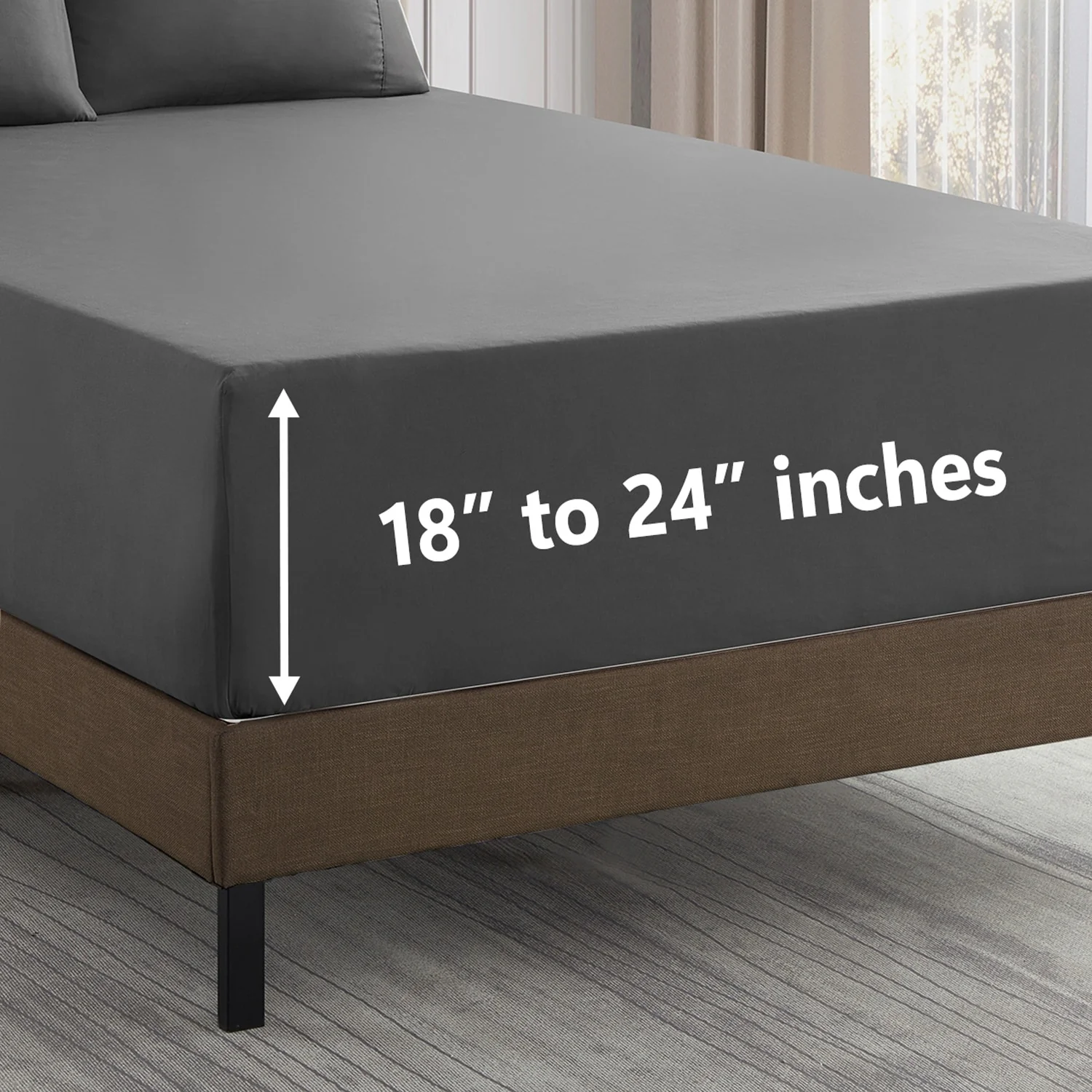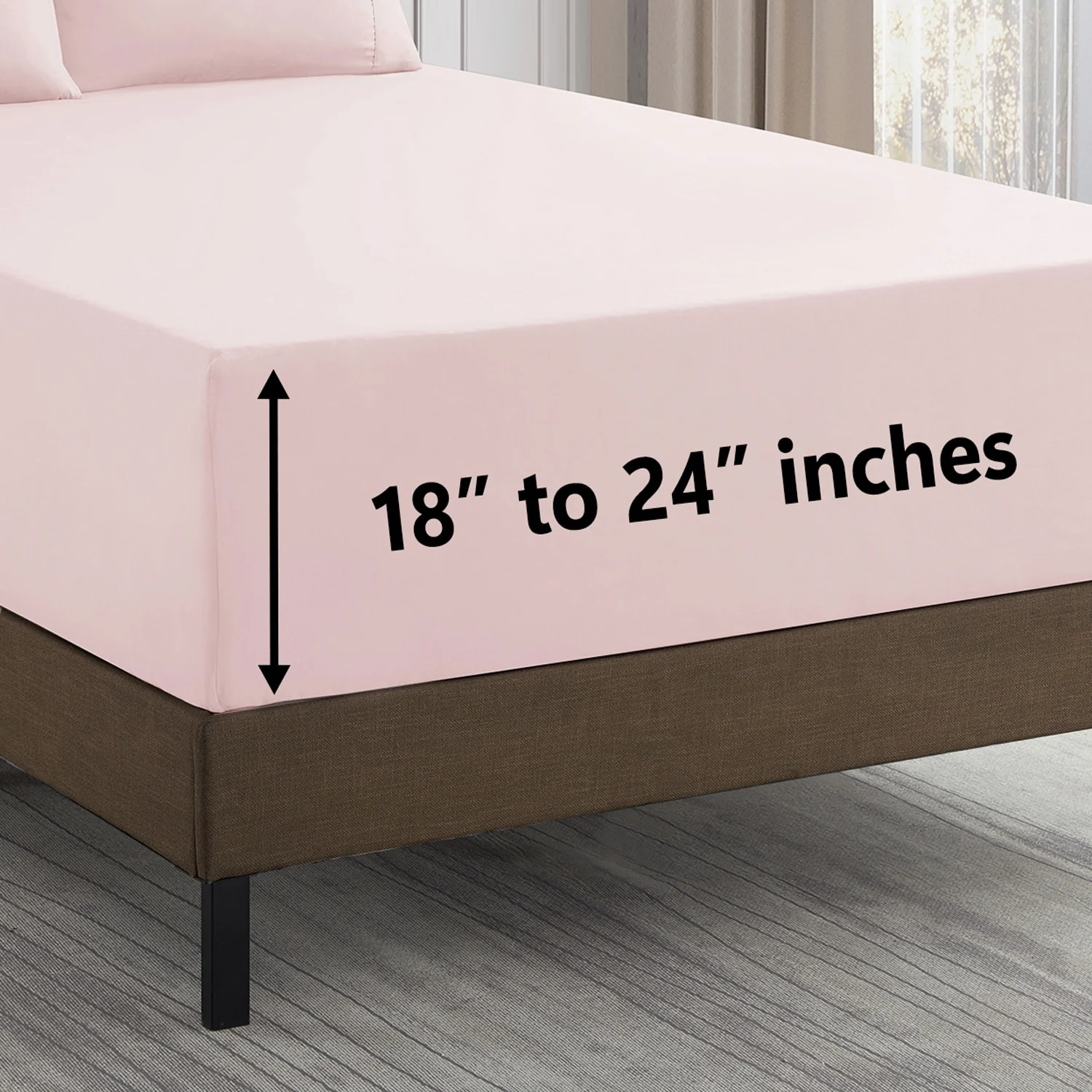 Explore our Extra Deep Pocket Solid Double Brushed Luxury-High End Microfiber Sheet Sets – the perfect addition to your bedroom for a blissful night’s sleep! Made with the highest grade of microfiber yarns, our sheet set includes everything you need for a cozy and inviting bed: a Flat Sheet, Fitted Sheet, and four Pillowcases.