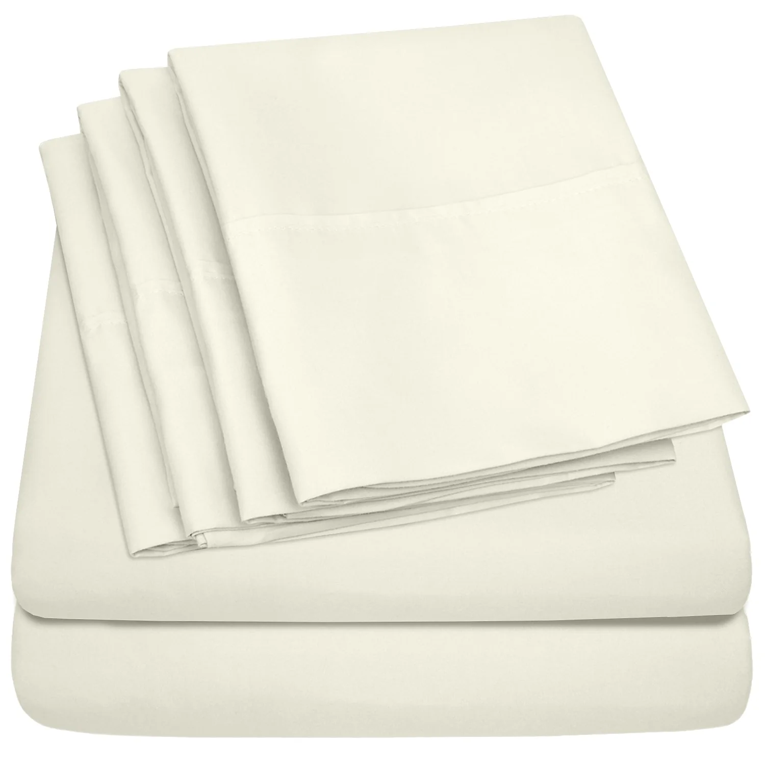 - Includes: 1 Fitted sheet, 1 Flat sheet, 4 Pillowcases