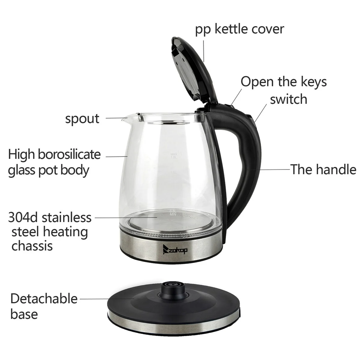 4. Auto shut-off,boil dry and overheat protection