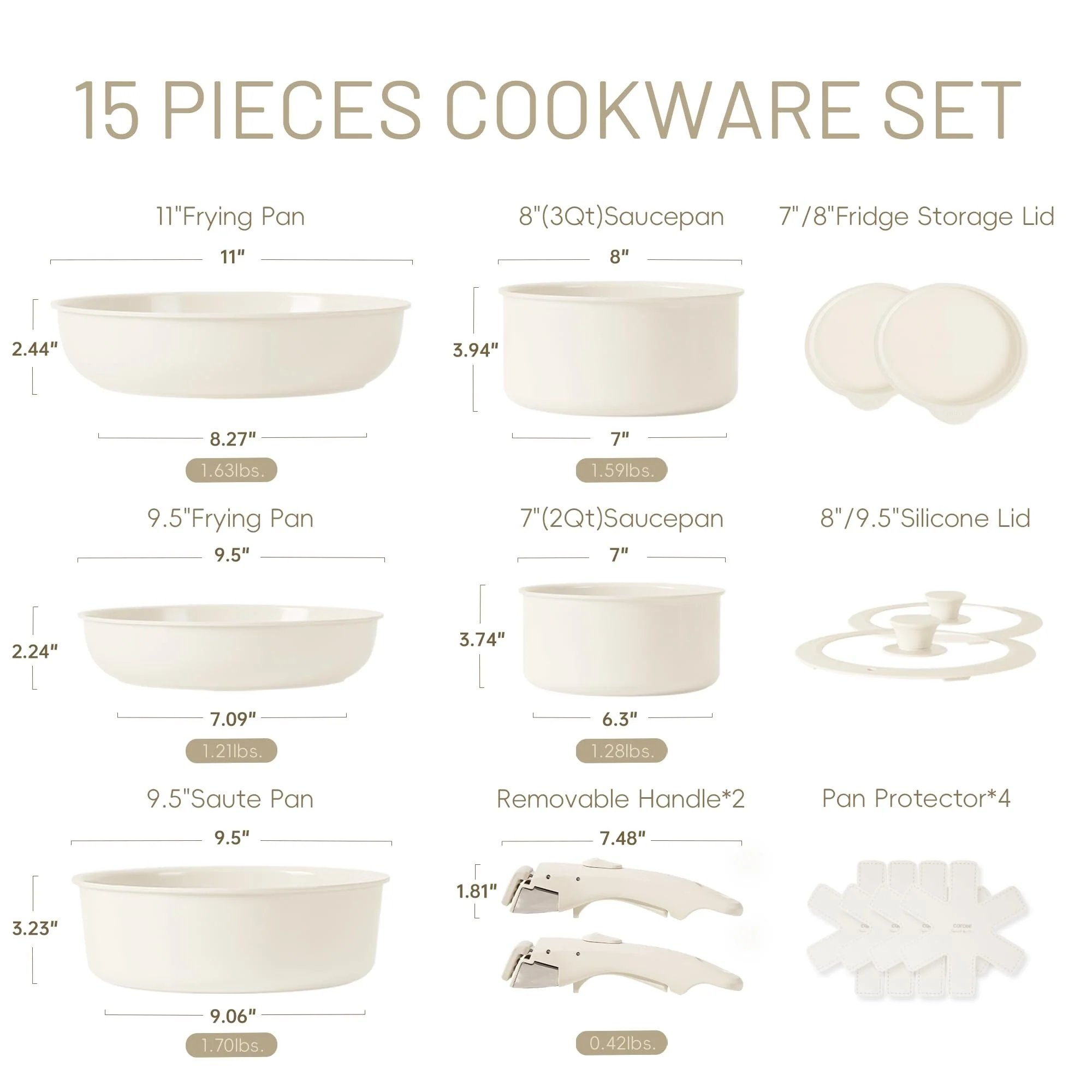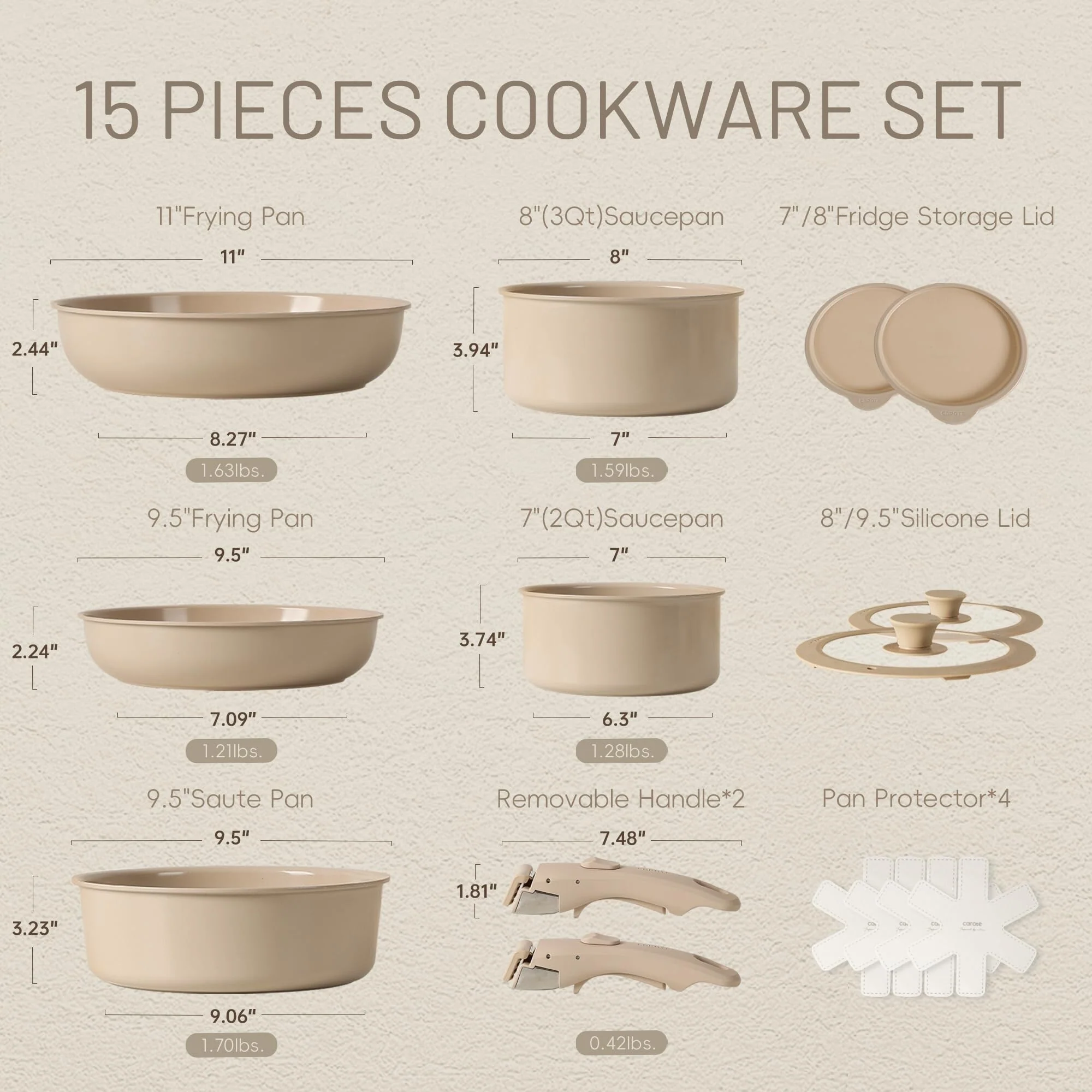 15pcs Pots and Pans Set, Ceramic Cookware Set Detachable Handle, Induction Nonstick Kitchen Cookware Sets with Removable Handle