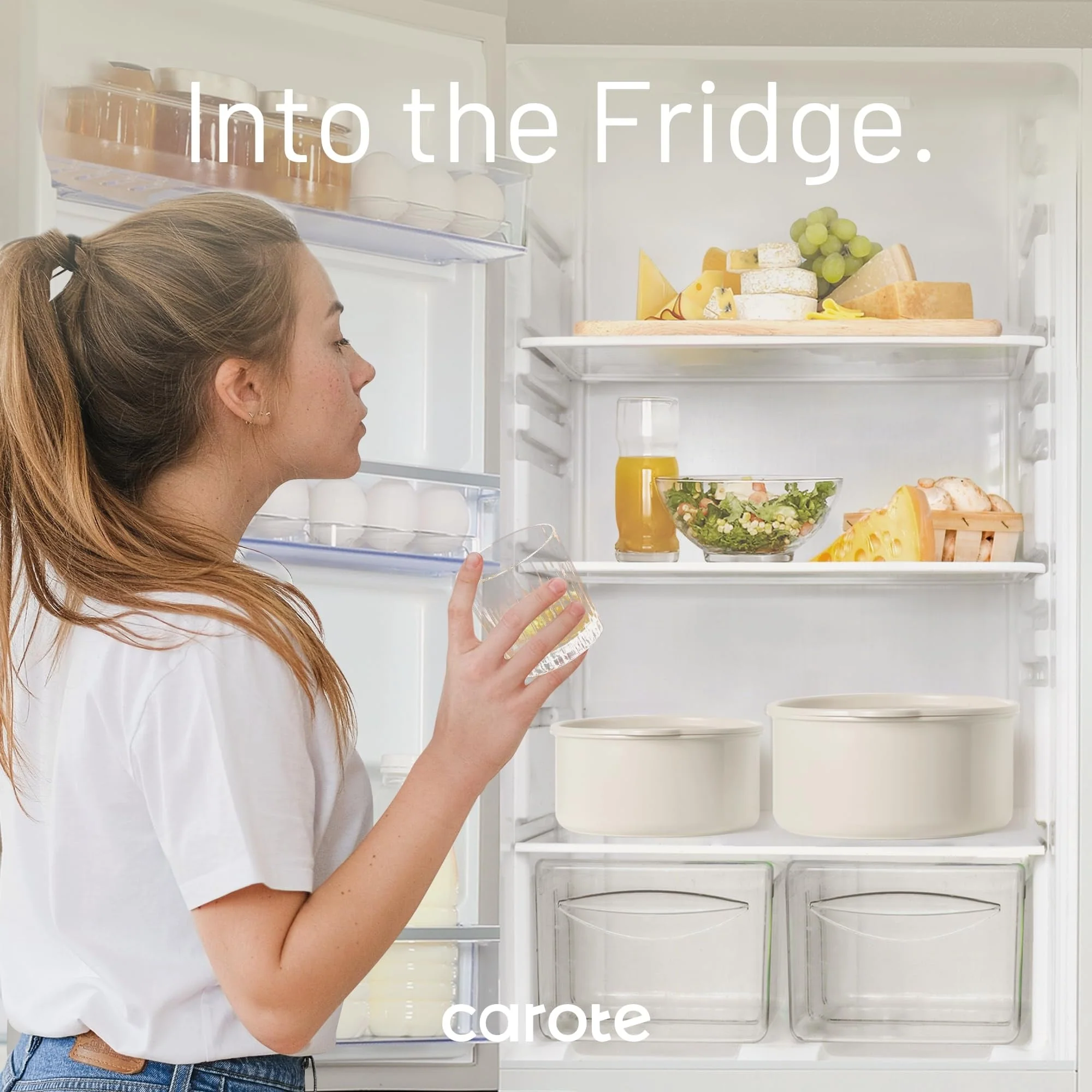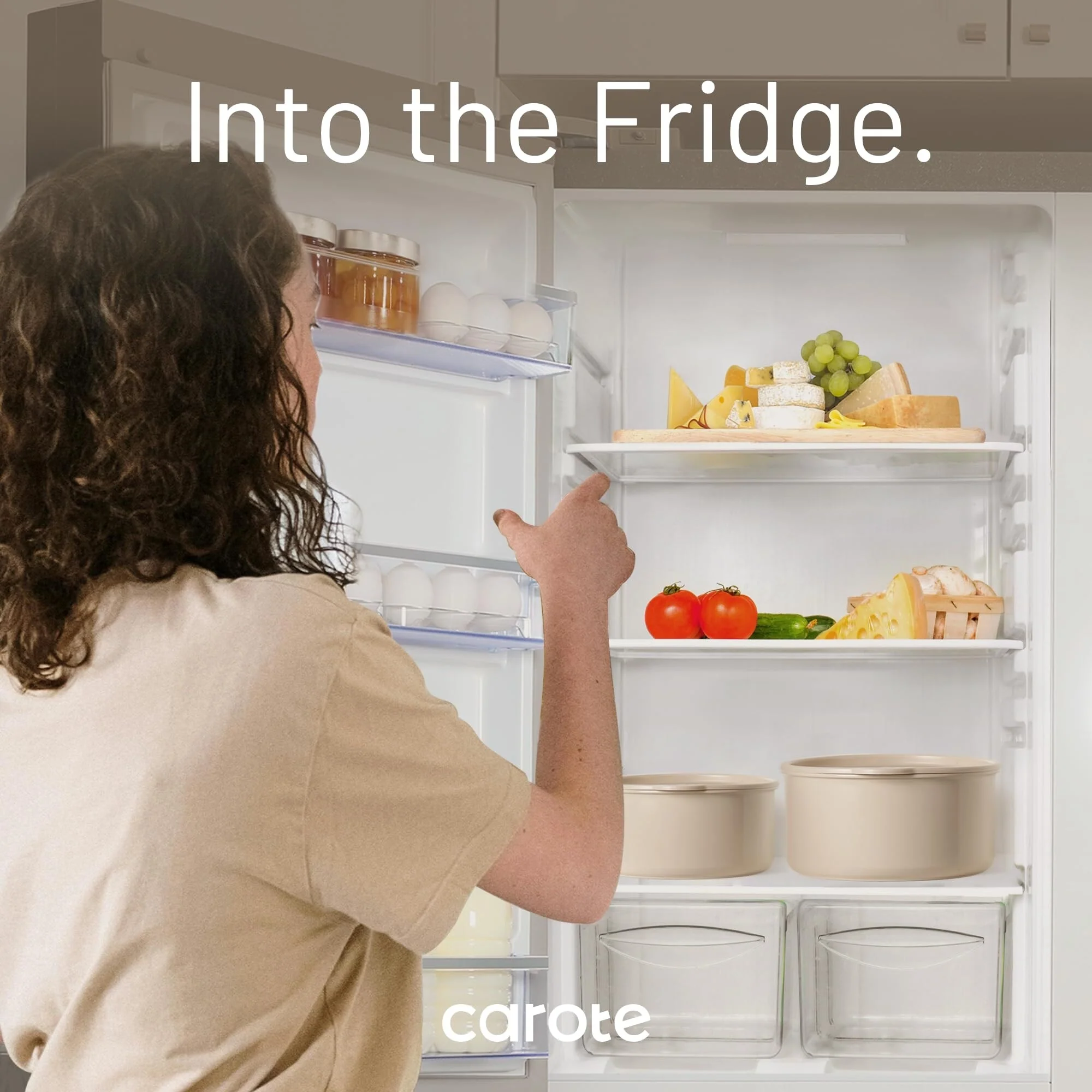 :With storage lid, this removable cookware set can serve as a storage container in the fridge.