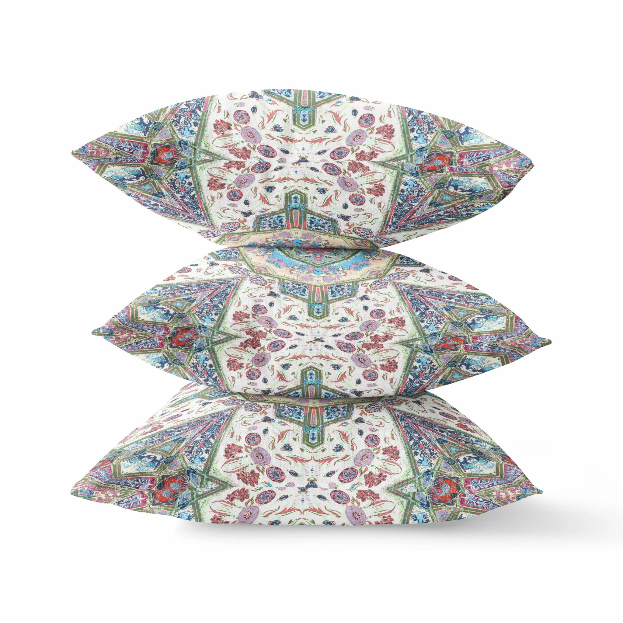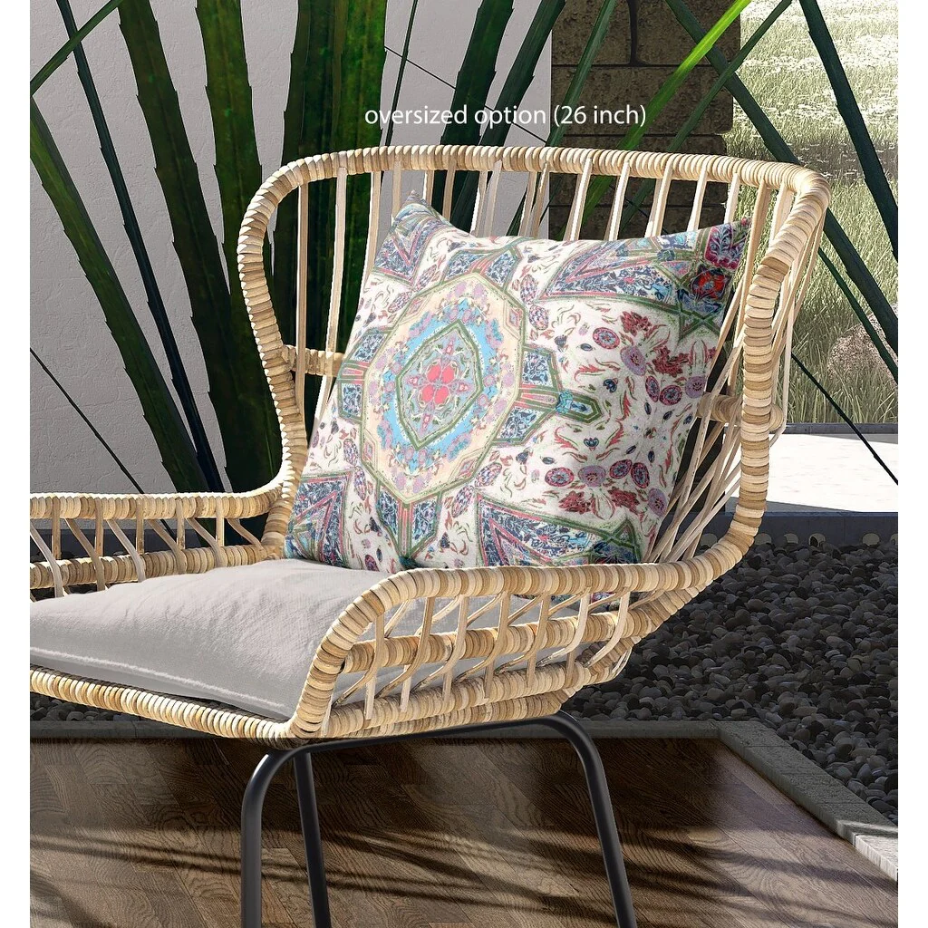 Wrapped in modern elegance with a bohemian flair, this Cream Pink Boho Flower Indoor Outdoor Throw Pillow is sure to spruce up your living space with its eclectic pattern and palette. The intriguing floral medallion in shades of aqua blue, pastel pink, green, and cream make this spectacular piece of décor one-of-a-kind in the room. Made of soft but premium quality broadcloth fabric, it is not only durable to use in indoor and outdoor settings but also ideal for everyday usage while maintaining its colorization. This blown and closed pillow is filled with a polyester fiber insert, giving it a luxurious cushiony feel and a fluffy nature for optimal comfort when you lean on it. If you want a subtle yet eye-catching element in your living room, opt for this lovely throw pillow that’s suitable for a range of modern, contemporary, and traditional décor. 16" x 16" x 5"