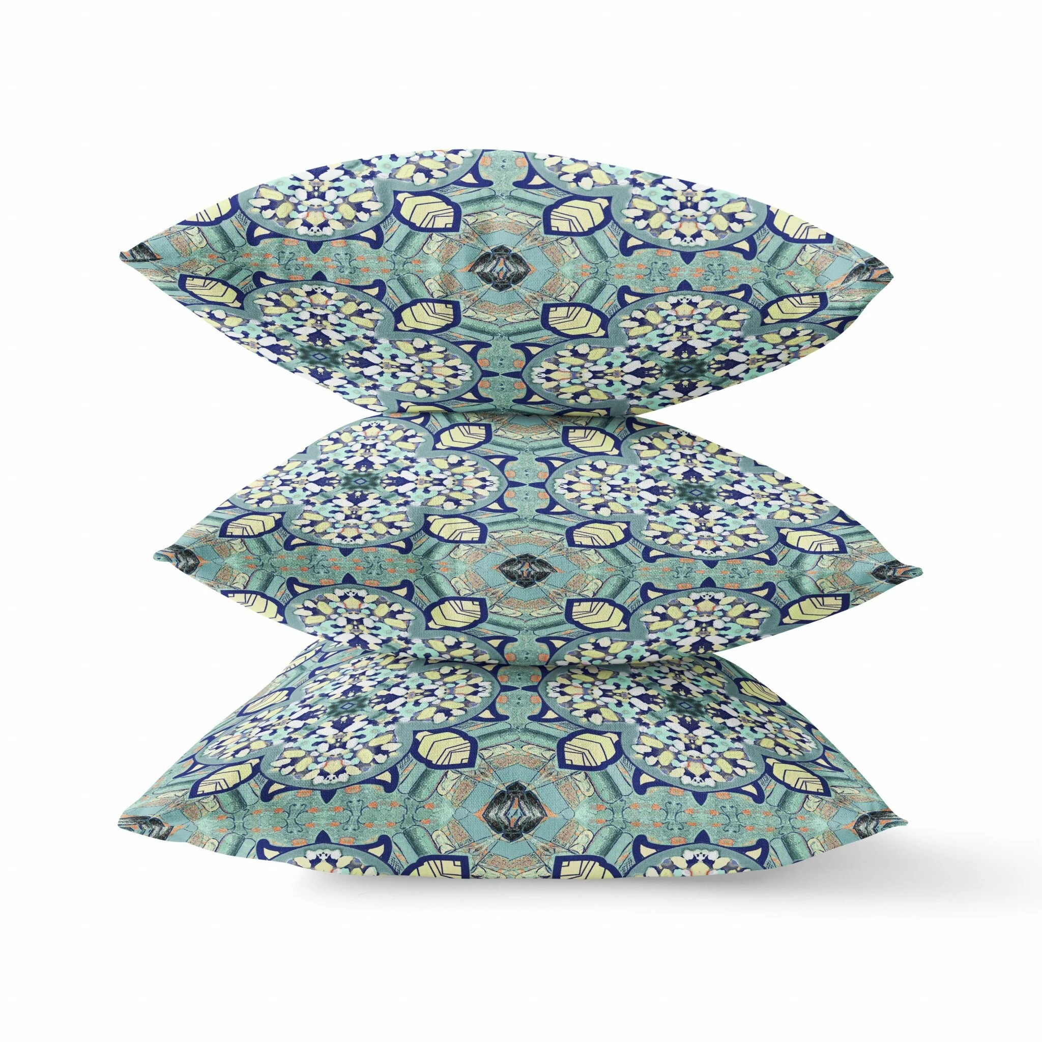 The enthralling patterns of this Green Cream Cloverleaf Indoor Outdoor Zippered Throw Pillow combined with subtle elements of foliage blend together to make this an attention-grabbing accent piece for your conventional home. The pillow itself is visually stunning with its serene, almost jewel-like shades of green with traces of brown and a creamy light yellow in the fascinating clover leaf geometric pattern. Featuring a premium broadcloth fabric in its construction, the pillow feels as luxurious as it looks while also being functional for everyday use indoors and out. This pillow comes with a zippered cover and a durable polyester filling inside that makes the piece super soft and cuddly providing utmost comfort with added fluffiness for visual appeal. This radiant pillow has been designed to be the personification of bohemian style inside a traditional abode. 16" x 16" x 5"