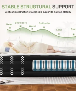 - Stable Internal Structure: designed with elastic honeycomb column structure, it can support up to 660 lbs. without collapsing, providing enhanced comfort, stability and support; made of tough PVC material, this inflatable mattress is scratch-resistant, tough, and can maintain its shape for ultimate comfort and support.
