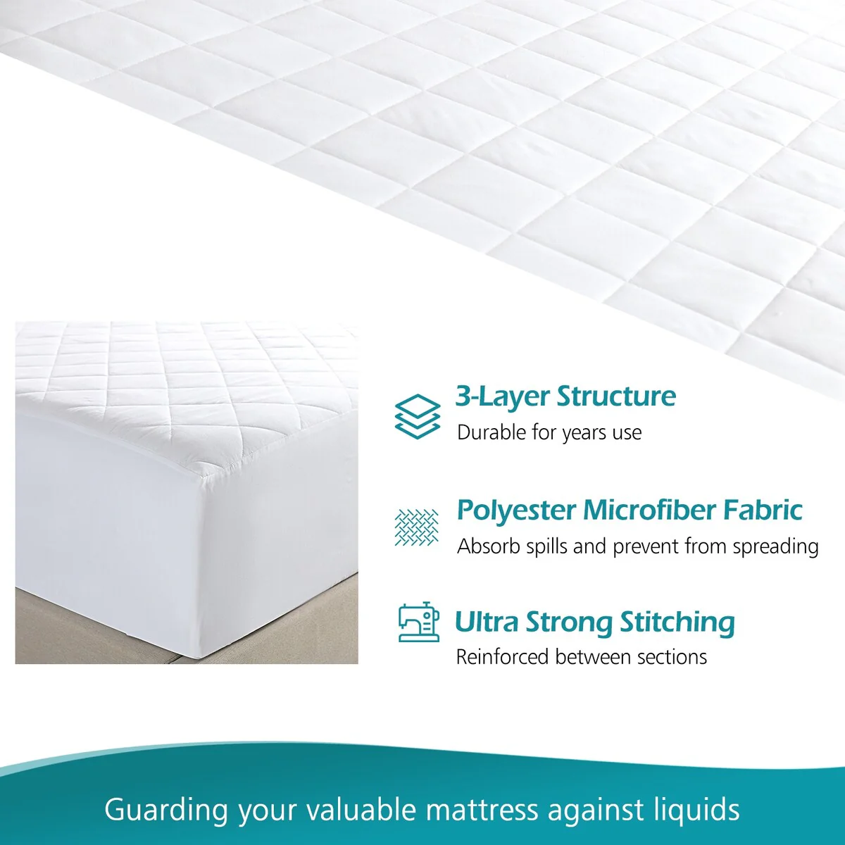 Get soft comfort and quiet waterproof protection, with this cozy mattress pad. This ultra-plush microfiber and hypoallergenic down alternative fill mattress pad is diamond quilted for a soft, smooth and breathable surface with a liquid-proof layer below. Â