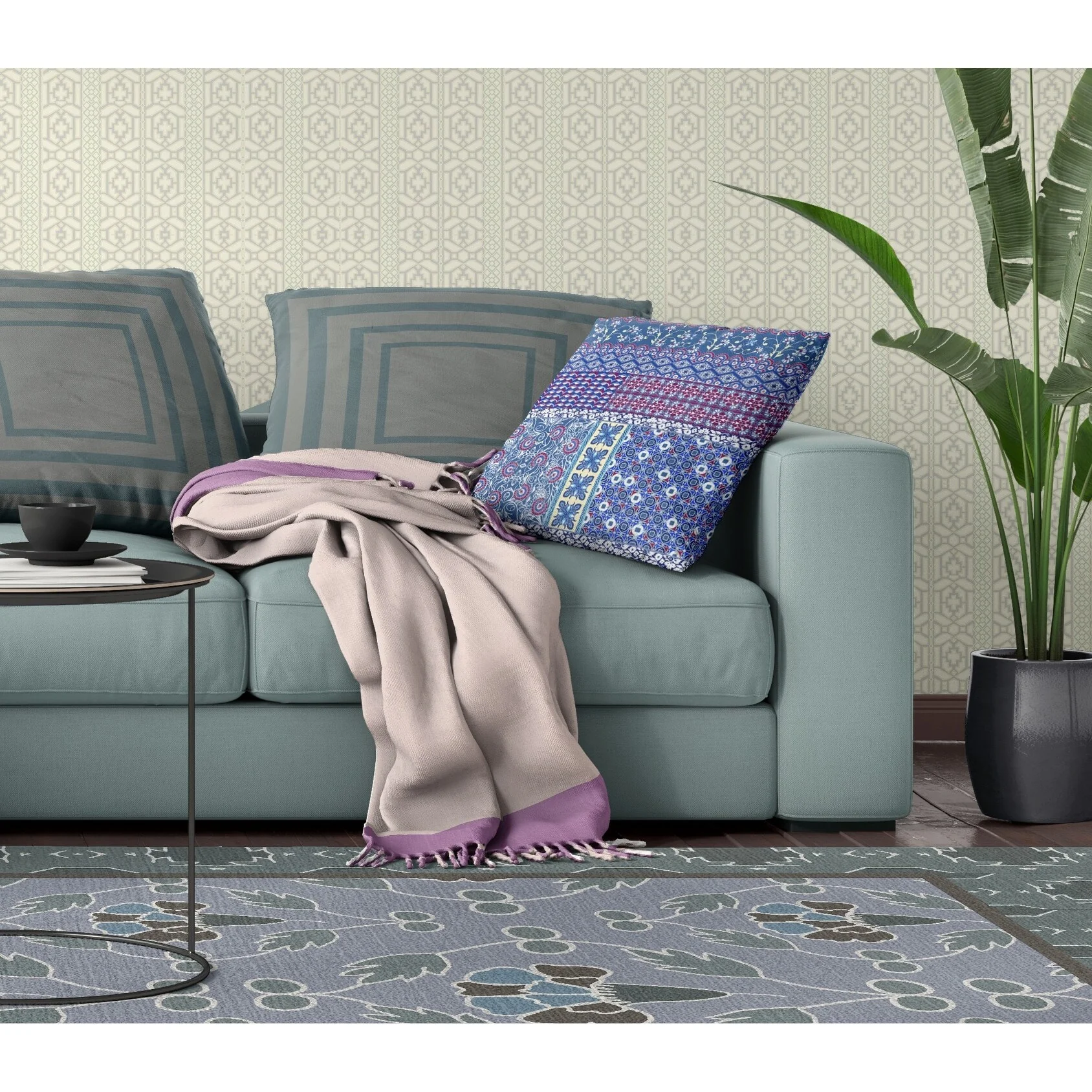 Capture the peacefulness of oceanic hues with this Navy Plum Patch Indoor Outdoor Throw Pillow that will emphasize a bohemian style into your living space. The cobalt blue base flaunts luxuriously detailed geo floral patchwork in soft blue, white, pale yellow, and pops of plum-toned hues, creating an eye-catchy design. Skillfully made of premium quality broadcloth fabric, which has a smooth surface texture with long-lasting durability to serve you for years. With an exceptionally soft and durable polyfill insert, this pillow ensures maximum comfort with enhanced fluffiness for visual appeal. This pleasant color combination of this decorative pillow will seamlessly complement the aesthetics of any modern or bohemian decor. 16"? x 16"? x 5"?