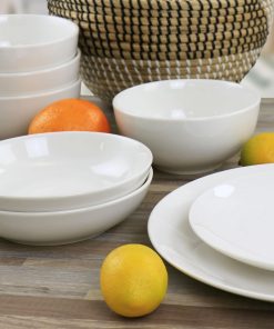 Add a touch of elegance and class with 16 Piece Porcelain Double Bowl Dinnerware Set. This beautiful timeless fresh plate set goes great with any setting for every occasion. Allowing for you to display your meal effortlessly, this service set for four includes two large serving bowls ideal for rice, salad, pasta and stews, show off your culinary greatness. Constructed of Porcelain, this durable tableware set is sure to last through your most memorable meals. Dishwasher and microwave safe for easy reheating and easy cleaning.