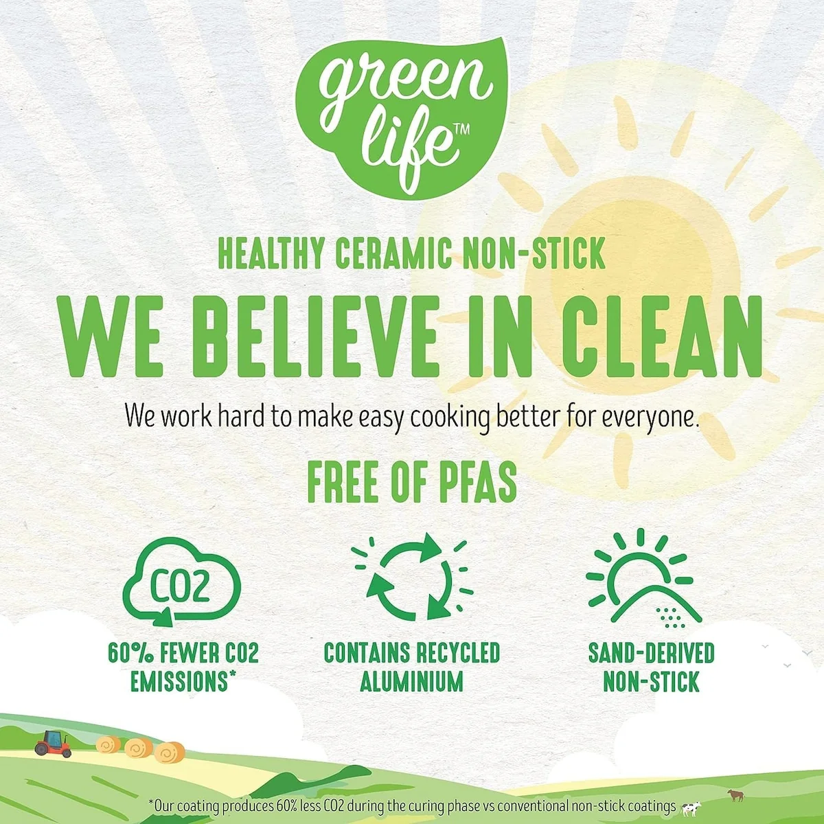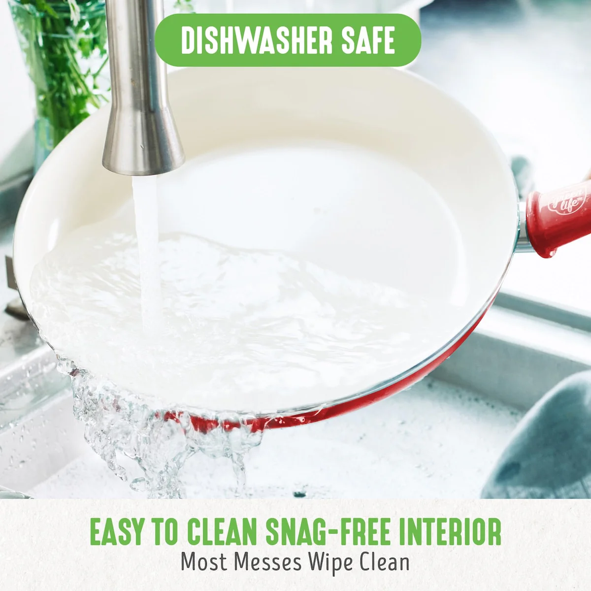 HEALTHY CERAMIC NONSTICK: Our healthy and easy-to-clean ceramic nonstick coating is derived from sand and delivers effortless release with quick cleanup  Â