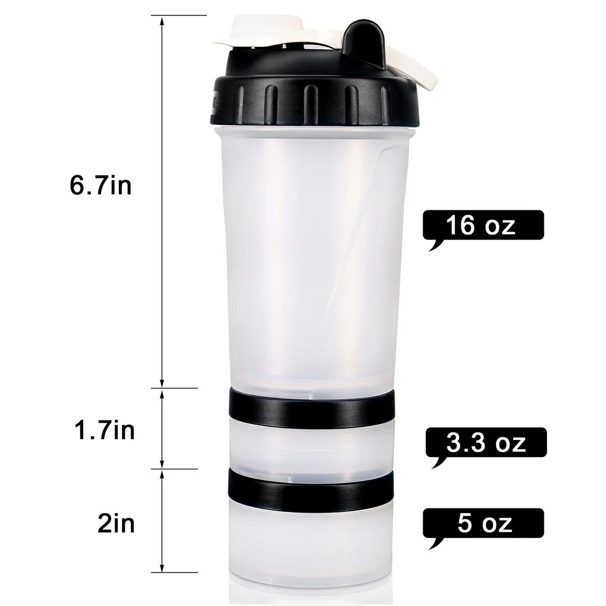 - Convenient Interlocking Storage: Our 16oz protein shaker bottle features a unique interlocking storage compartment at the bottom, allowing you to conveniently store protein powder, supplements, vitamins, or snacks for on-the-go convenience.