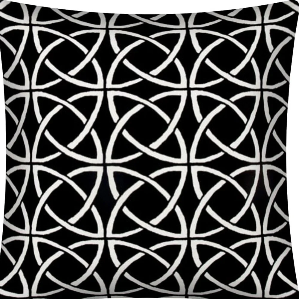 17" X 17" Black And White Zippered Polyester Interlocking Throw Pillow Cover