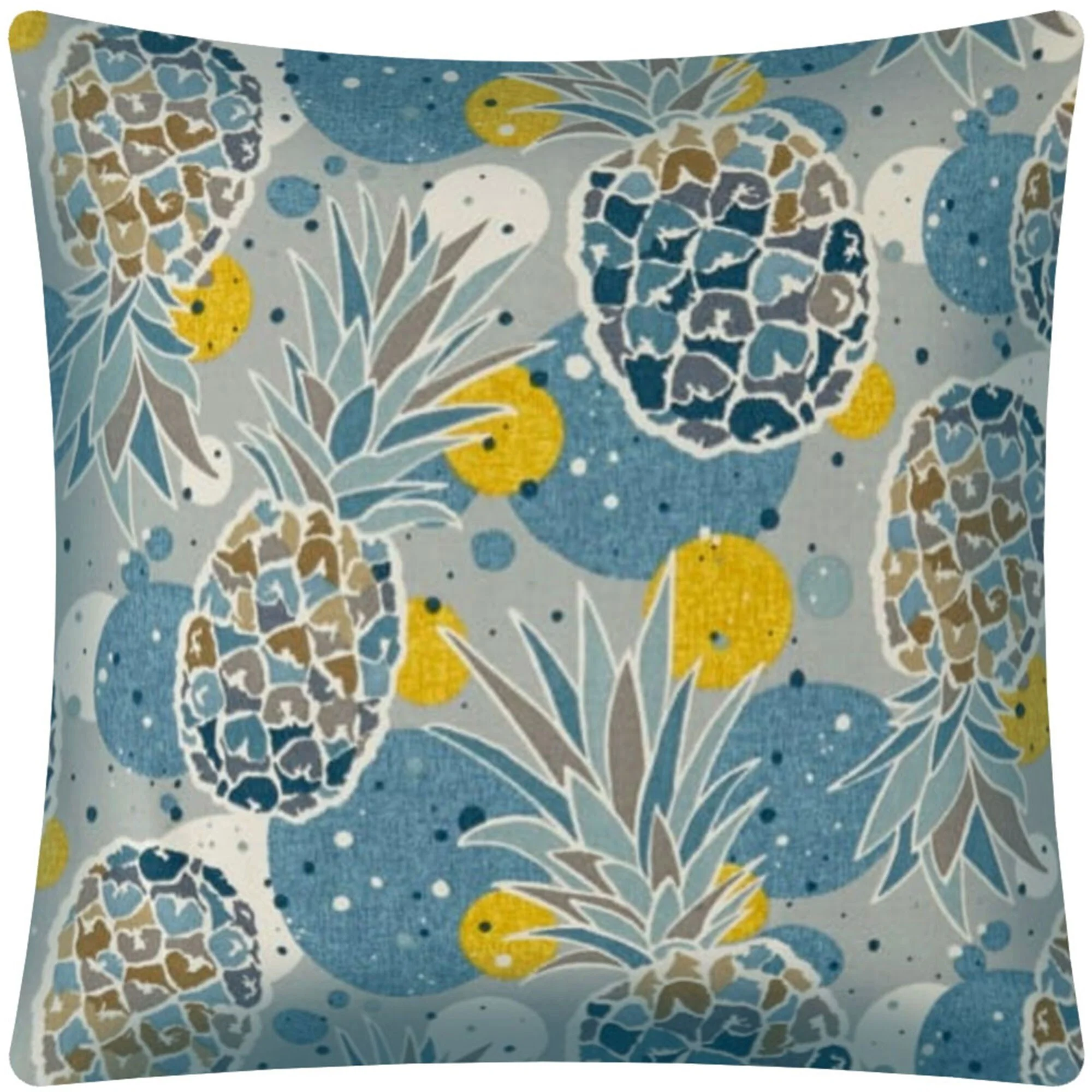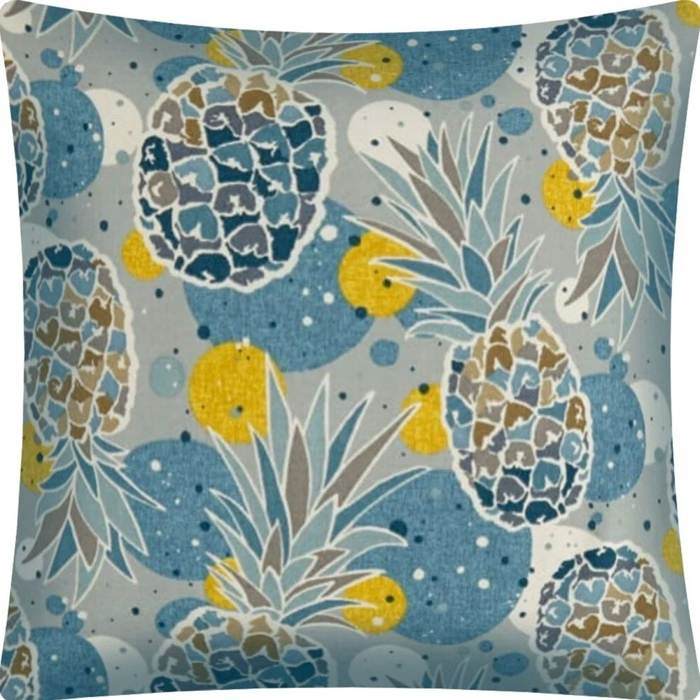 Unique and decorative, this comfortable 17" x 17" blue yellow and ivory zippered polyester tropical throw pillow cover will leave a lasting impression. The blue yellow and ivory coloring of the soft and long lasting polyester will look great in most any space. Makes a perfect decorative addition for anyone who loves a stylish look and feel. A great decorative accessory for your favorite chair, to accent your sofa, or to use as part of your bed ensemble. 17" H x 17" W x 0.25" D