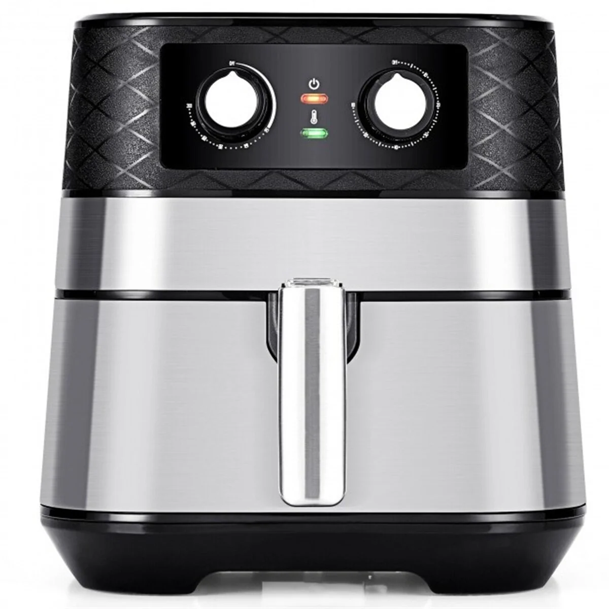 1700W high power air fryer with 360° air circulation system for quick cookingPrecise time and temperature control to satisfy different cooking needsSet the temperature(180℉-400℉)and the tine(1-60 mins) as you needCompact yet 5.3 QT large capacity fryer for your family to share delicious togetherEquipped with automatic overheating protection and steam evaporation systemAuto shutoff if the door is opened during cooking to avoid accidentsDishwasher-safe fry basket and non-stick surface reduce your cleaning timeSay goodbye to oil excess food and start to cultivate a healthy eating habit