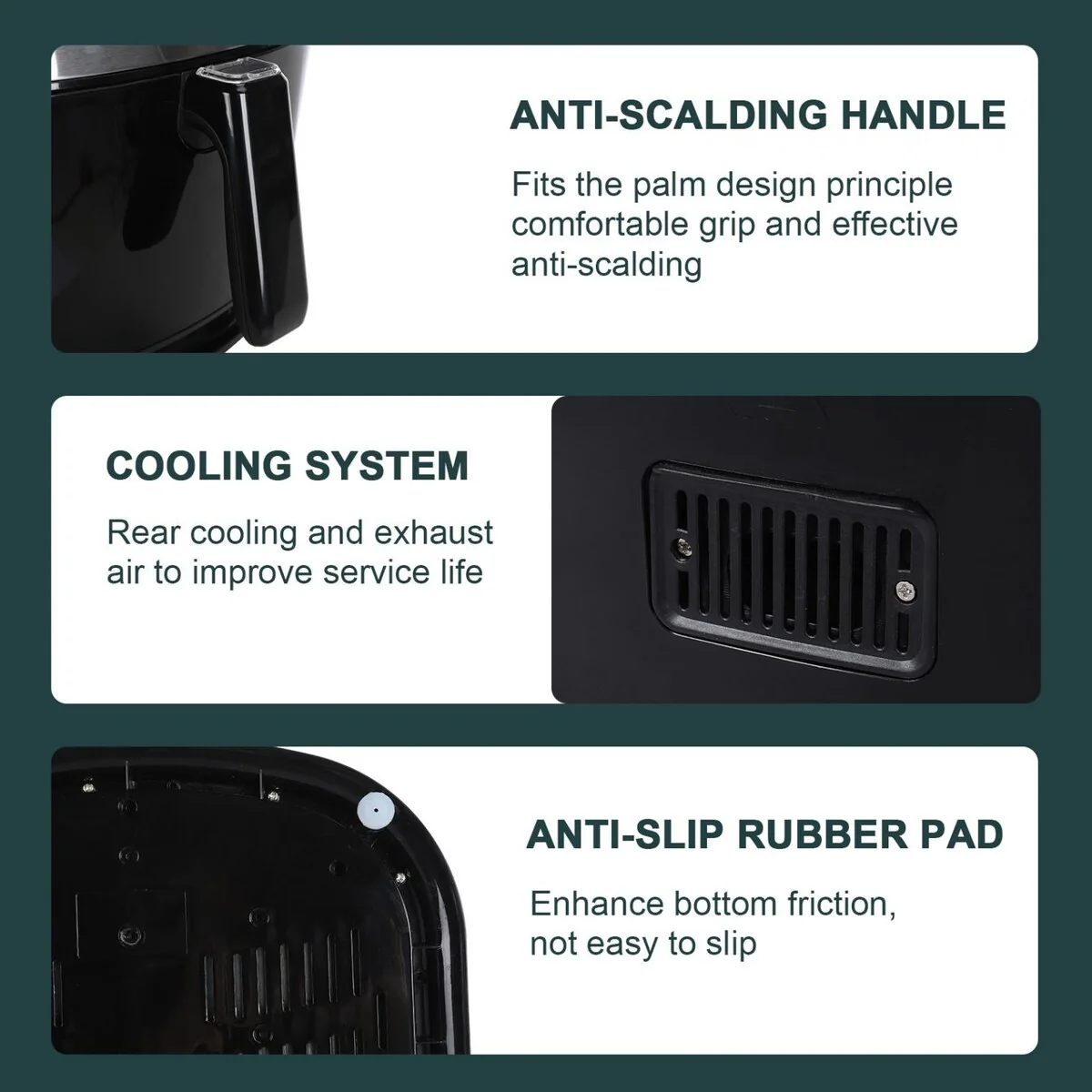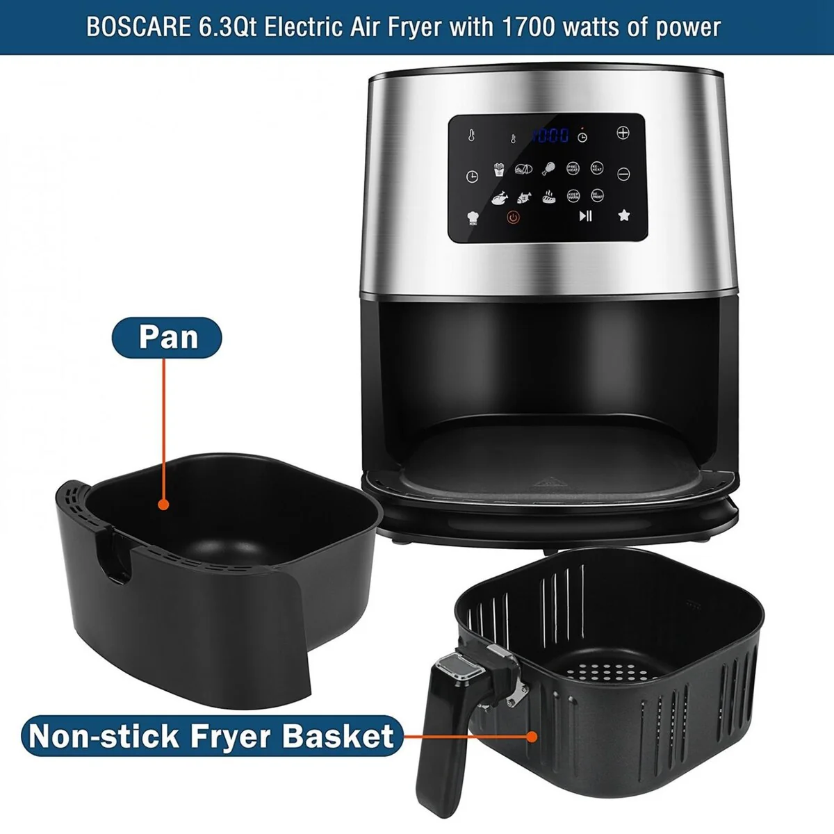 Air Fryer 6 Liters 1700W High Power and Oil-free Cookware with 10 Preset LED Touch Screens, Detachable Double Non-Stick Basket with Recipe Guide