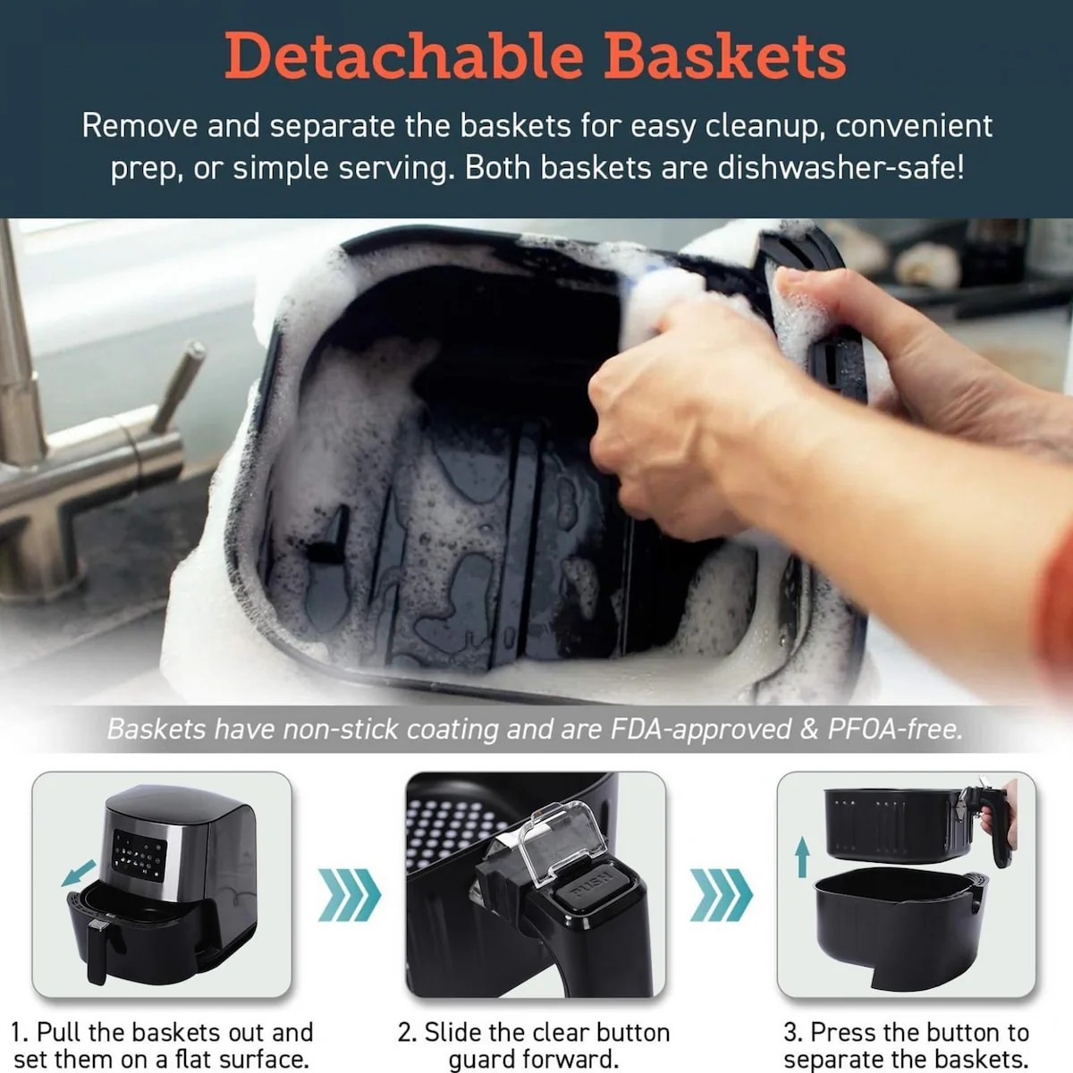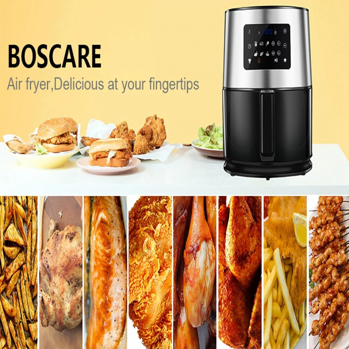Air Fryer 6 Liters 1700W High Power and Oil-free Cookware with 10 Preset LED Touch Screens, Detachable Double Non-Stick Basket with Recipe Guide