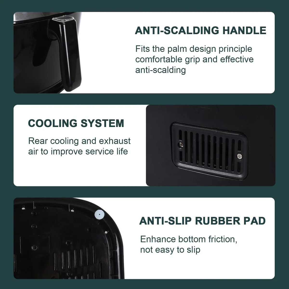 [Large capacity, high power] This 6-liter air fryer can easily hold 800 grams of chicken nuggets or 8 cakes, which is a necessity for a family of 2-7 people. The power of up to 1700W greatly reduces the cooking time and saves time. When you get home from get off work, just put the seasoned food in the air fryer, press the preset button, and when the bell rings after 30 minutes, you can taste the delicious food. [Healthy and oil-free] Thanks to the 360° circulating hot air system, we can bake food quickly and evenly. Compared with traditional ovens, it can reduce oil by 80%. It is an essential product for a healthy life.