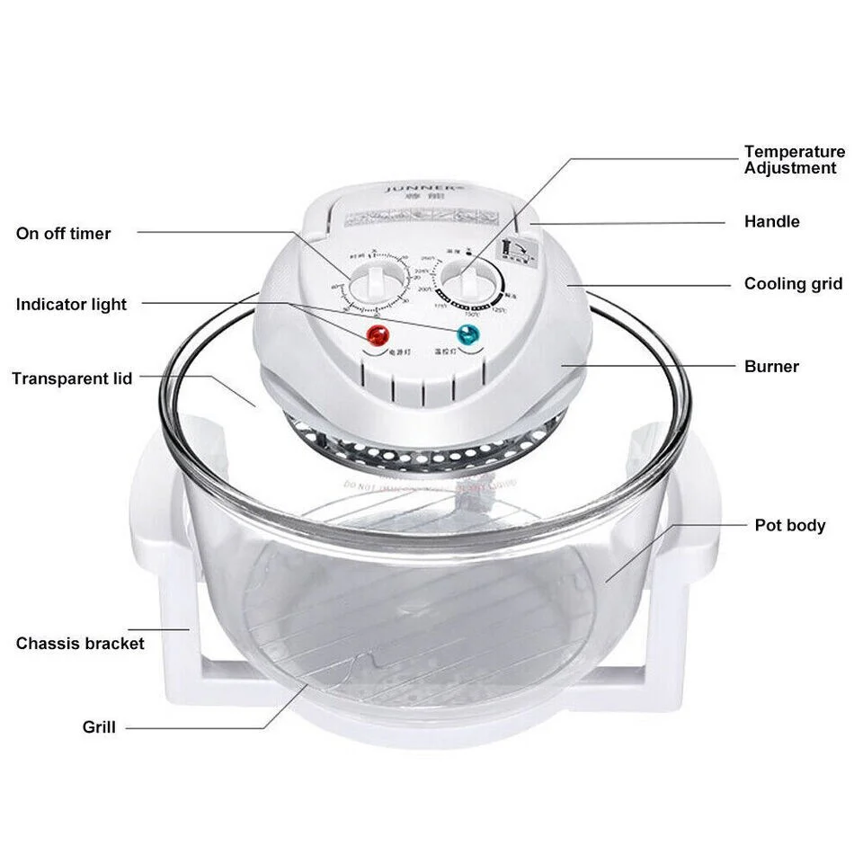 17L Glass Air Fryer Infrared Convection Oven Roaster