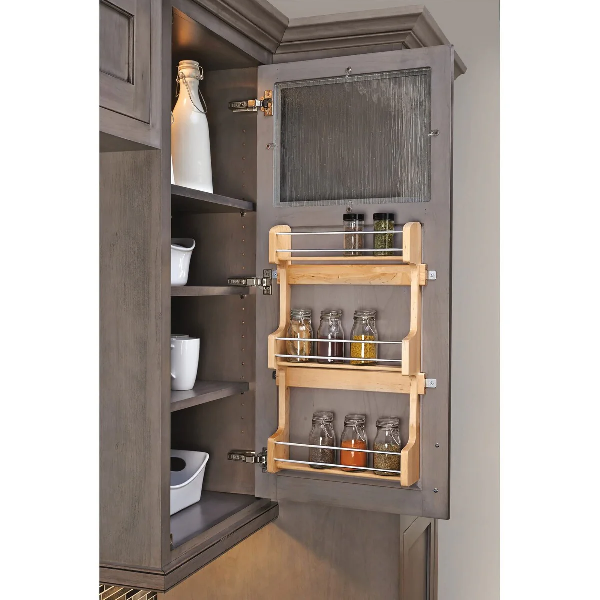 18" 3 Tiered Pull Out Shelf Organizer for Kitchen Cabinets, Pantry Storage Spice Seasoning Rack, Door/Wall Mounted, Maple Wood