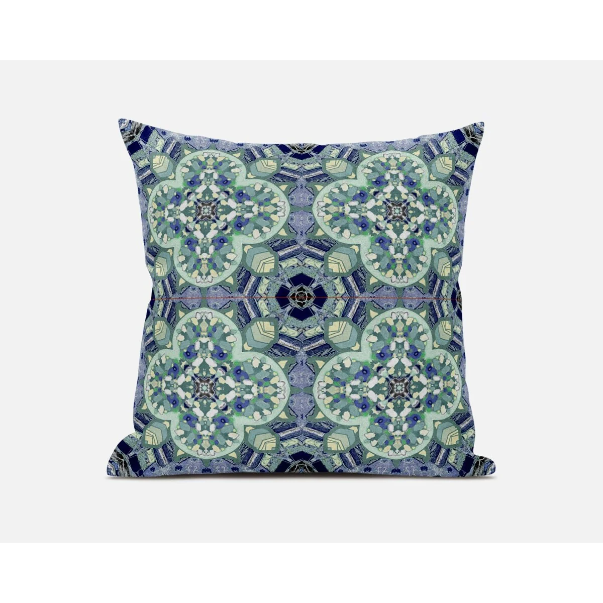 You could almost feel the ocean with this cool-toned Aqua Blue Floral Indoor Outdoor Throw Pillow Aqua Blue Cloverleaf Boho Zippered Suede Throw Pillow in your modern abode. The harmony of the jewel-toned greens with the aqua, blue, and indigo accents embedded into the clover-like geometric emblem make this throw pillow a visual representation of serenity. The silky smooth and durable suede fabric gives the piece an appealing texture while ensuring enhanced durability to serve you for years. This zippered pillow is finished to perfection with a soft and durable polyfill insert for a fluffy appearance, making it an ideal accent piece in terms of fashion and functionality. The composition created between the calm blues and jewel-like greens on the floral motifs of this decorative pillow is sure to induce a calm and comforting tone into your boho-chic home. 18" x 18" x 5"