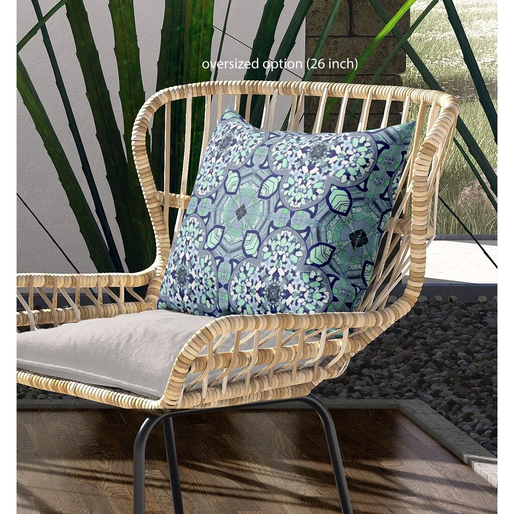 Create the perfect artistry of urban boho with this Blue Aqua Cloverleaf Indoor Outdoor Zippered Throw Pillow for the most exclusive take on modern interior design. The relaxing blue and cyan shades show off intricate cloverleaf patterns to fashion a harmonious friendship between modern furniture and boho decorates. Made with the finest broadcloth, the pillow boasts longevity and sturdiness, ideal for both indoor and outdoor use. The soft polyfill insert offers a fluffy look with a cozy feel while the zippered closure makes the cover easy to remove and clean. The oceanic vibes adorned with jewel-toned accents will create a calming and uplifting ambiance in your home. 18" x 18" x 5"