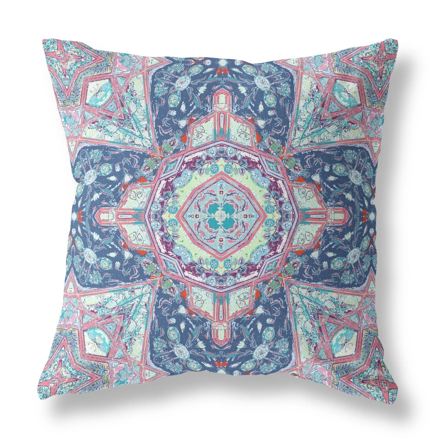Embracing floral motifs with contemporary linework, this lovely Blue Gray Floral Boho Indoor Outdoor Throw Pillow will bring a classic boho-chic vibe into your home. This is a welcome addition to any contemporary décor, as it is designed to bring the brilliant pastel blues, pinks, and gray tones with modern styling in mind. Precisely crafted with the premium quality broadcloth fabric, this throw pillow is sturdy, preserving its pristine look even after years of usage, while the soft and smooth texture makes it a voguish accent for indoor and outdoor settings. The soft polyfill insert ensures the pillow to be super fluffy and cozy providing a soft feel on the touch.Bring a boho-chic vibe into your home with this beautiful throw pillow that will enhance the aesthetics of any living room. 18" x 18" x 5"