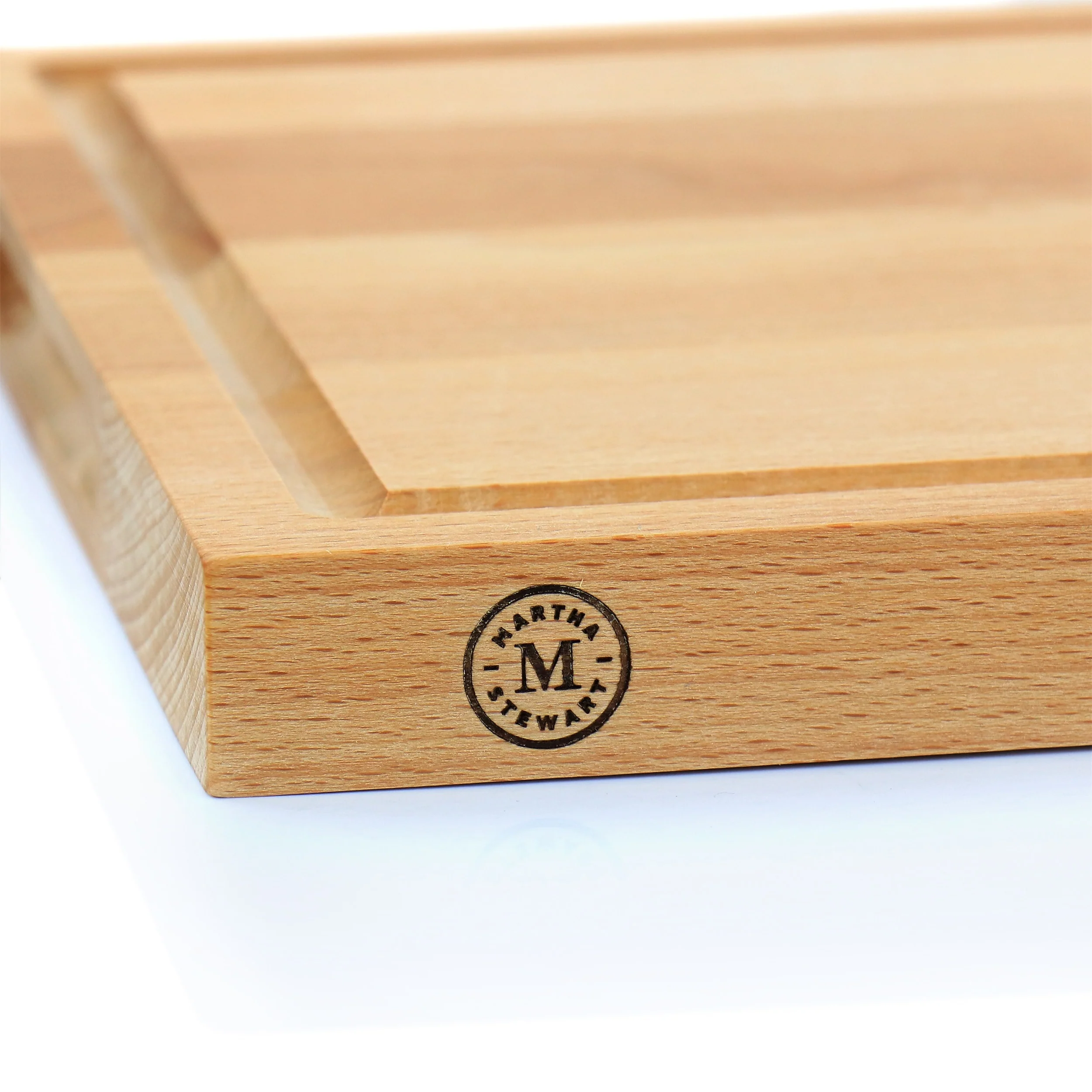 The Martha Stewart 18 Inch x 12 Inch Reversible Rectangle Beech Wood Cutting Board is a beautiful addition to any kitchen workspace. Features a large cutting surface for comfortable use regardless of how large the task is. The beech wood material is durable enough for chopping and visually ideal for serving snacks. Grooves along the edge prevent juices from spilling out onto kitchen counters and the built-in handles are perfect for moving the board from place to place. For proper care and longevity, the cutting board is hand wash only. Cut meats and veggies, or set a stunning assortment of cheeses and finger foods for the perfect display. Item Dimensions: 18.00" x 12.00" x 1.25"Item Weight: 6.45lbs