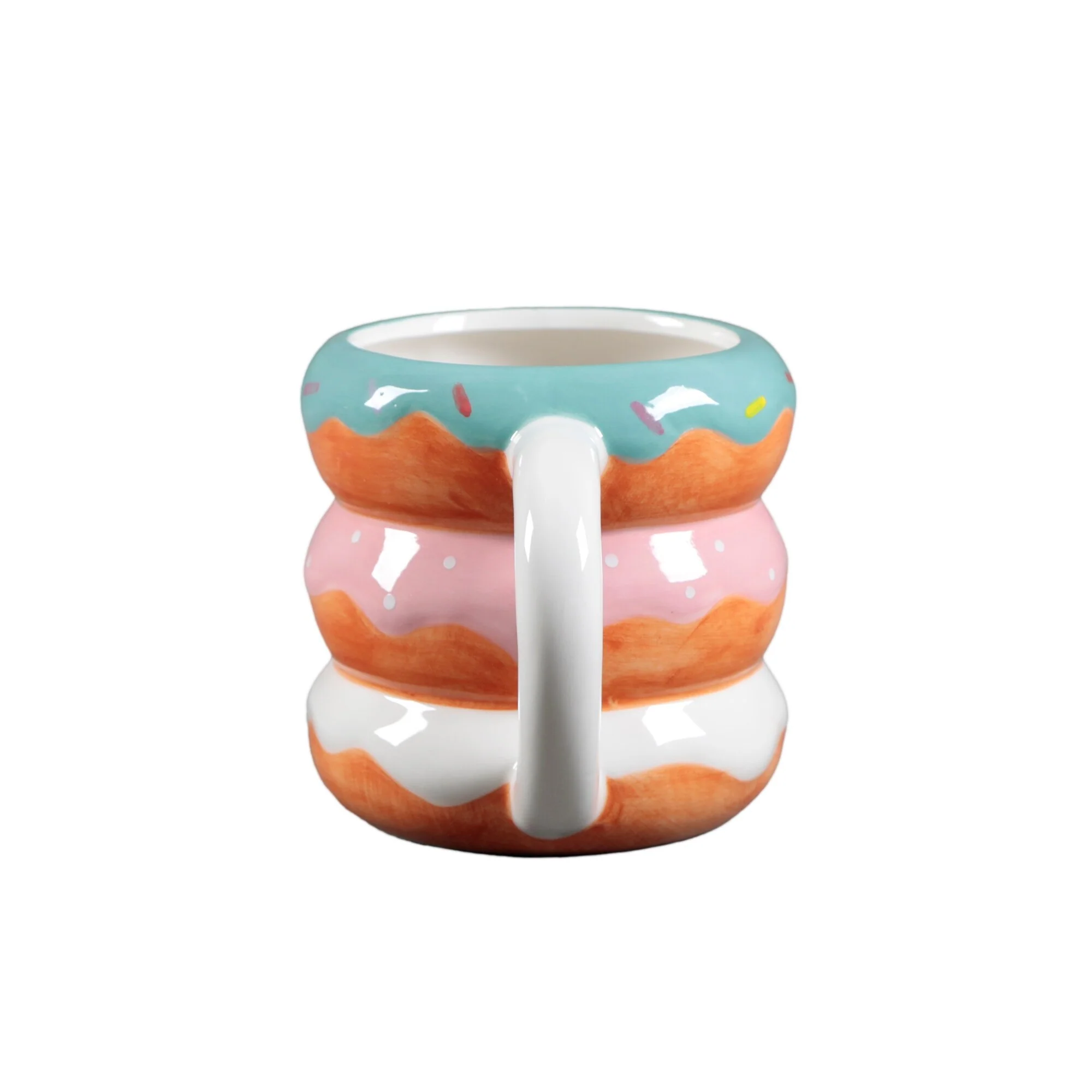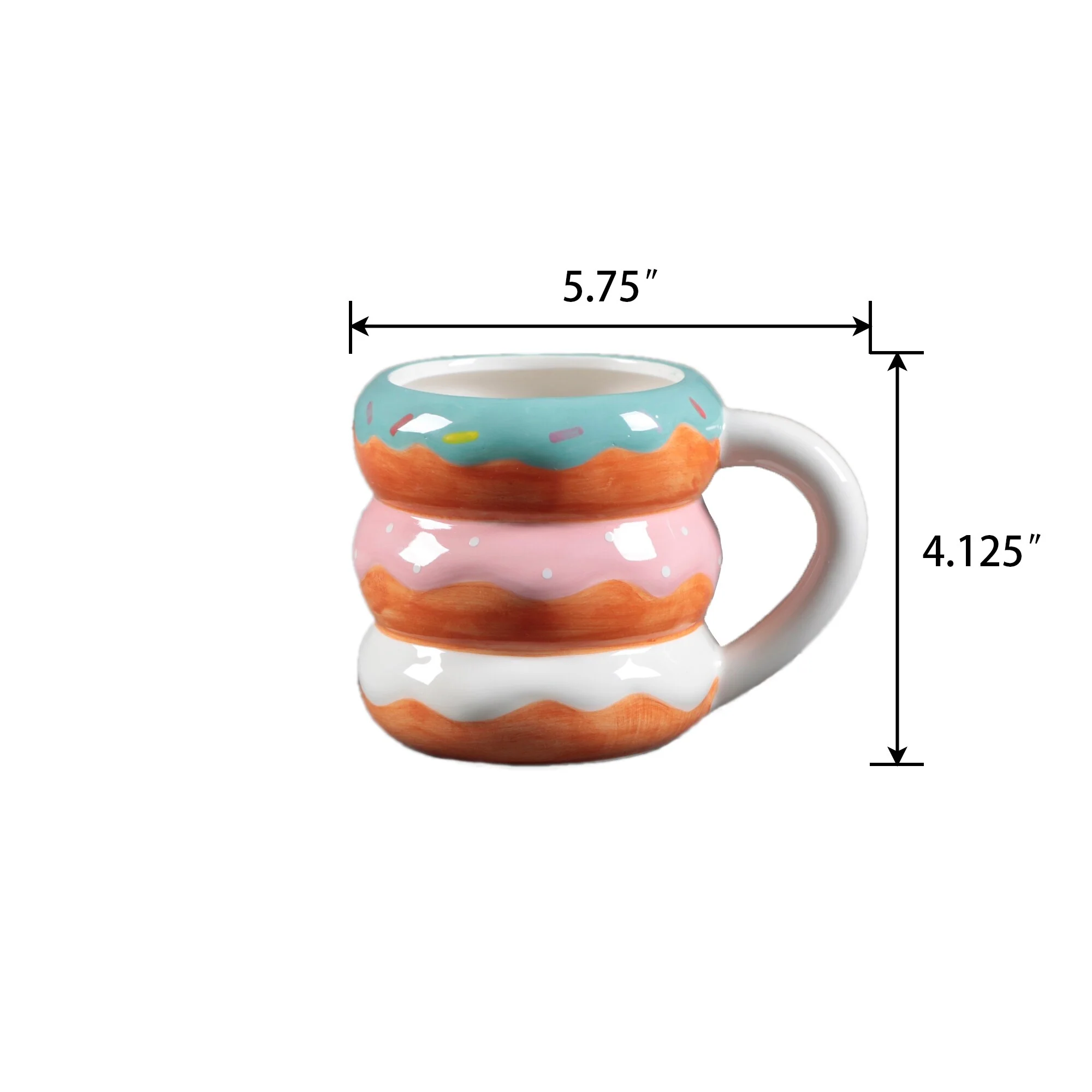 Indulge your mornings with this whimsical donut stack ceramic mug. Featuring vibrant pastel glazes with sprinkles and frosted layers, this mug mimics a stack of delicious donuts, making it a playful addition to your kitchenware. The glossy ceramic finish ensures easy cleaning, while the sturdy handle offers a comfortable grip. Perfect for coffee, tea, or hot cocoa lovers, this mug adds a sweet touch to your daily routine or makes a fun gift for donut enthusiasts.